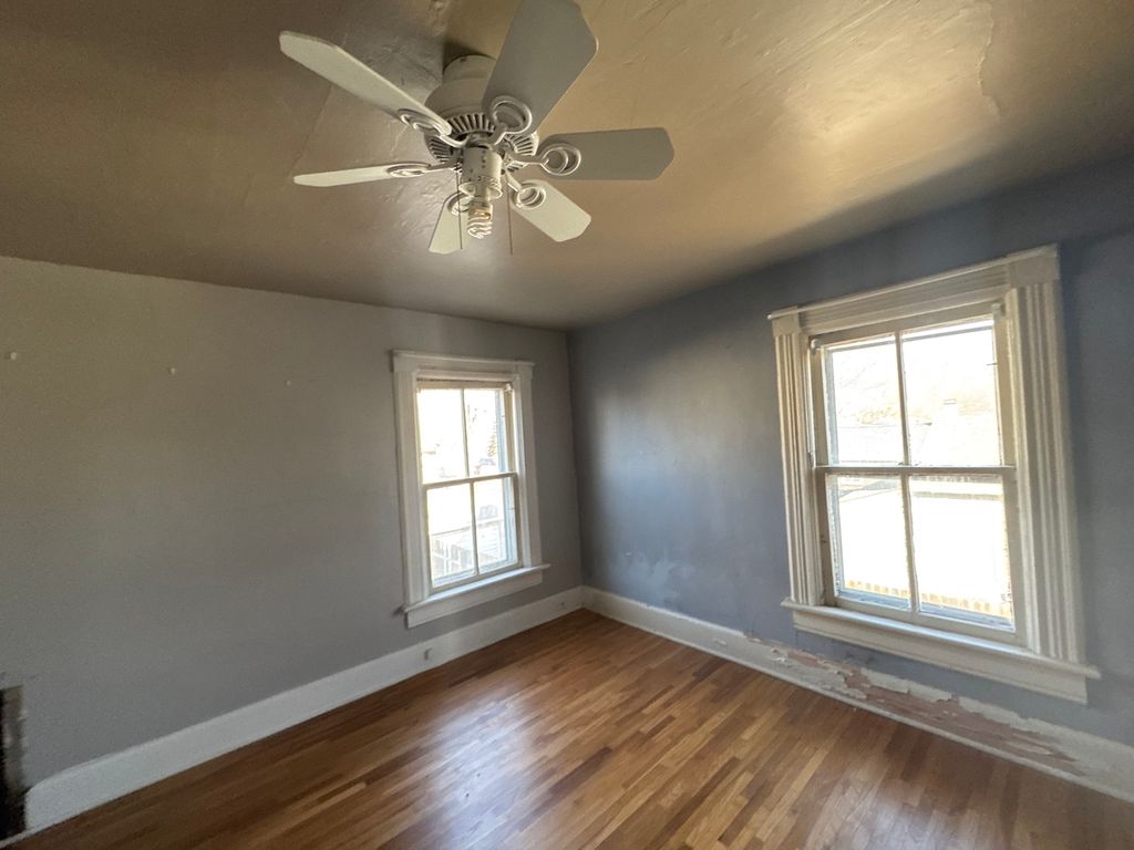 3 bedroom, 2 bath home with hardwood floors, open staircase, and abundant natural light. Features a fenced yard and a detached garage. Home is sold as-is.