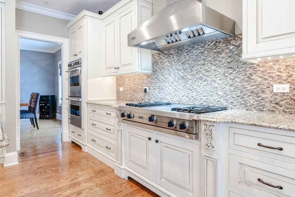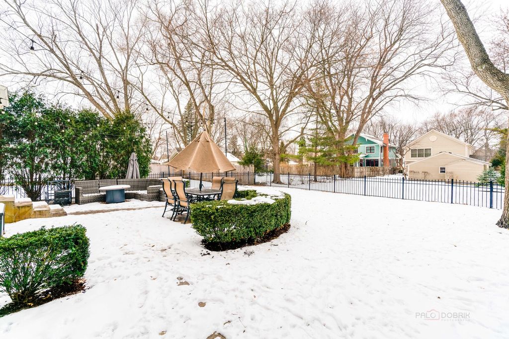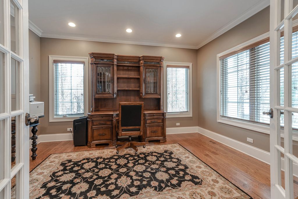 ELEGANCE AND STYLE WRAPPED UP IN ONE - STUNNING 4 BEDROOM, 3.1 BATH LUXURY HOME BY LANDMARK SIGNATURE HOMES IN PRIME LIBERTYVILLE LOCATION! Showcasing timeless architectural details, designer finishes, and unforgettable curb appeal, this impressive two-story home features a striking stone, brick, and cedar exterior that commands attention from the moment you arrive. Inside, remarkable hardwood flooring spans most of the first and second levels, delivering warmth, continuity, and upscale appeal buyers are searching for. A welcoming foyer greets you as you arrive and sets the tone for the thoughtfully designed floor plan. Just off the entry, French doors open to a private first-floor office, ideal for today's work-from-home lifestyle or a quiet study space. The formal dining room is perfectly positioned for hosting holidays and dinner parties with ease, offering quick access to the gourmet updated kitchen. Truly the heart of the home, this chef's kitchen is loaded with high-end finishes and premium appliances. A plethora of white cabinetry with elegant crowned uppers and under-cabinet lighting provides abundant storage. The oversized island with breakfast bar seating is perfect for casual dining and entertaining, complemented by impressive granite countertops and a chic tile backsplash. Stainless steel appliances include a Viking Professional cooktop, hood, and double oven, a Sub-Zero refrigerator, and a KitchenAid dishwasher. A sunny breakfast area with sliding doors leads to the fenced backyard, creating seamless indoor-outdoor living and effortless summer cookouts. The kitchen opens directly to the spacious family room, highlighted by a cozy gas fireplace and open-concept layout that keeps everyone connected. A first-floor half bath and convenient laundry room complete the main level. Upstairs, the expansive primary suite serves as a true retreat, showcasing a tray ceiling, a large walk-in closet with custom shelving, and a spa-like ensuite bath with dual sink vanity, whirlpool tub, and separate shower. Three additional generously sized bedrooms with ample closet space and a second full bath with dual sinks and a tub/shower combination ensure everyone has space to unwind and call their own. The finished basement expands your living space with a large recreation room, a third full bath, and a versatile bonus room perfect for a home gym, second office, guest room, or flex space. Outside, enjoy a spacious patio overlooking the fenced backyard. A 2-car attached garage adds everyday convenience and storage. Located just minutes from Downtown Libertyville, Metra access, boutique shopping, top-rated restaurants, and Independence Grove Forest Preserve with miles of scenic walking and biking trails, this luxury home blends architectural detail, high-end finishes, and an unbeatable location. Come call this one home!