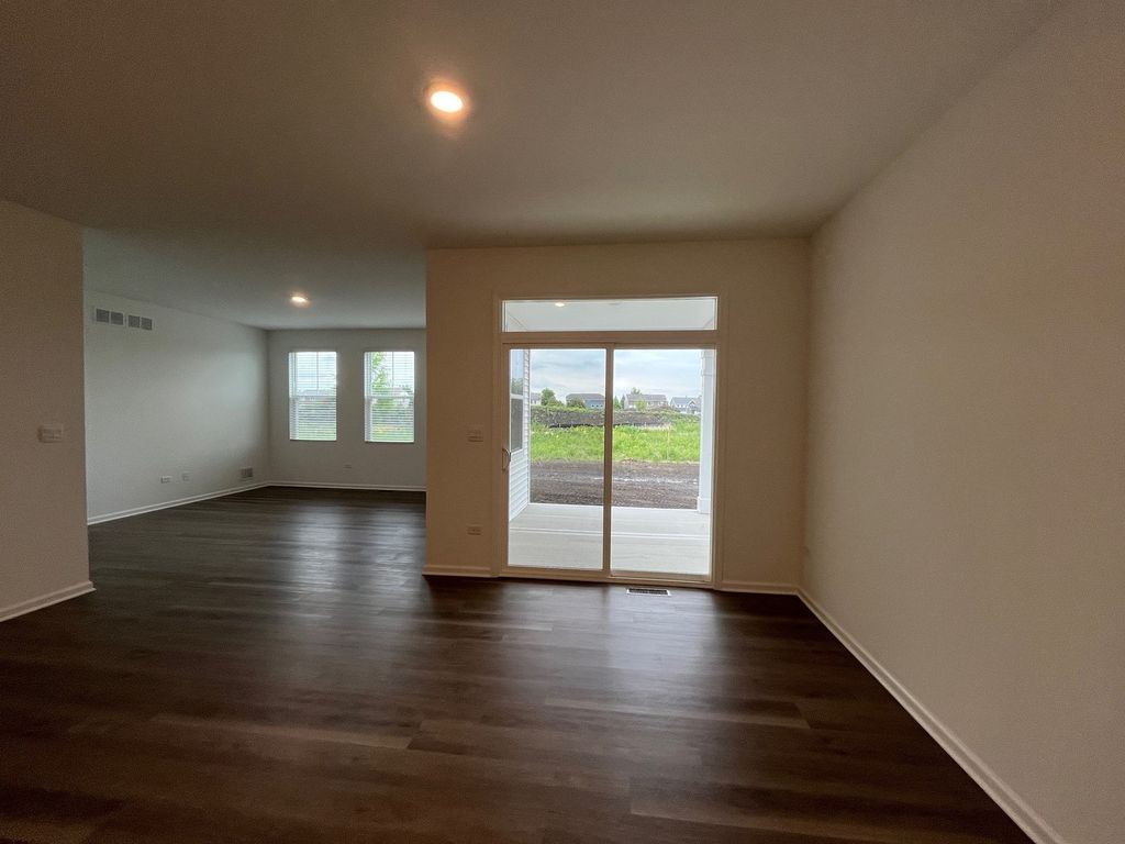 Envision yourself in a ranch-villa type located at 14615 S Greenbriar Dr in our Greenbriar Community in Plainfield, Illinois. This beautiful new Arlington plan includes lawn service, snow removal, sod front and back, landscape and covered back patio to relax on. This ranch home will be ready for a late Summer move-in! The Arlington plan offers 1,660 square feet of living space with 2 bedrooms, 2 full baths, 9-foot ceilings and luxury, easy-to-maintain, scratch and water-resistant vinyl plank flooring. When you first enter the home, the secondary bedroom and full bath is located up front for privacy. Walking down the hall, is the garage entry with nice landing space to take off your shoes, hang up your coat in the closet adjacent to the laundry room and flex space. This flex space is suitable for an office, hobby room, sitting room, formal dining room or even guest sleeping space. Next you will walk into the open concept luxury kitchen/great room with deluxe quartz countertops, 42" designer cabinets with crown molding and soft-close feature. Large walk-in pantry features shelving for your storage needs and over-sized island with overhang is great for kitchen prep or entertaining and has stainless steel sink with disposal. Enjoy your private get away with your spacious primary bedroom/en suite bathroom with a raised height dual sink, quartz top vanity, and walk-in with clear glass shower doors with transom window above for natural light with huge walk-in closet. All Chicago homes include our America's Smart Home Technology, featuring a smart video doorbell, smart Honeywell thermostat, smart door lock, Deako smart light switches and more. Photos are of a similar model home. Actual home built may vary.
