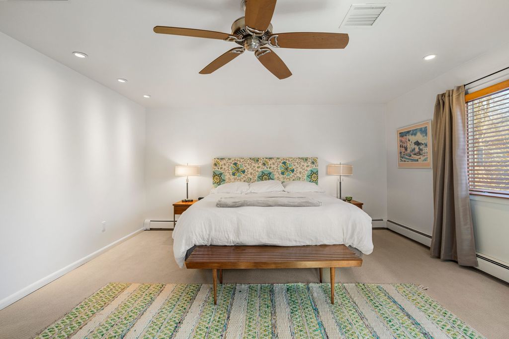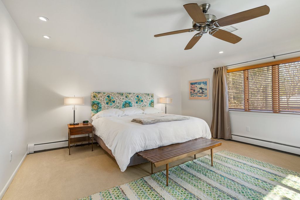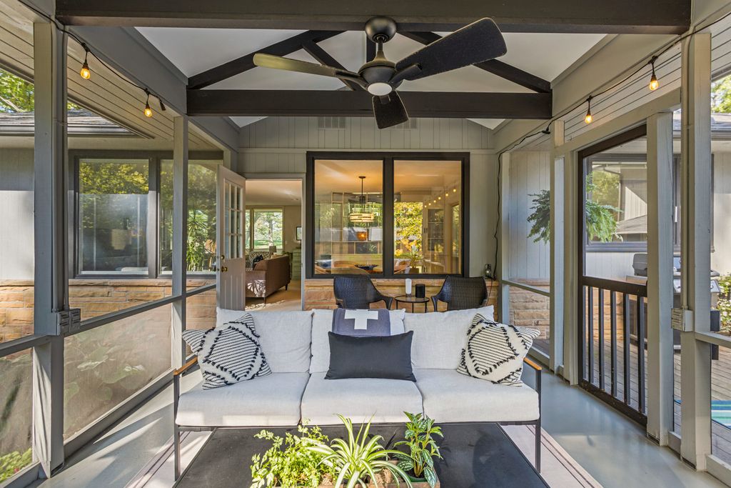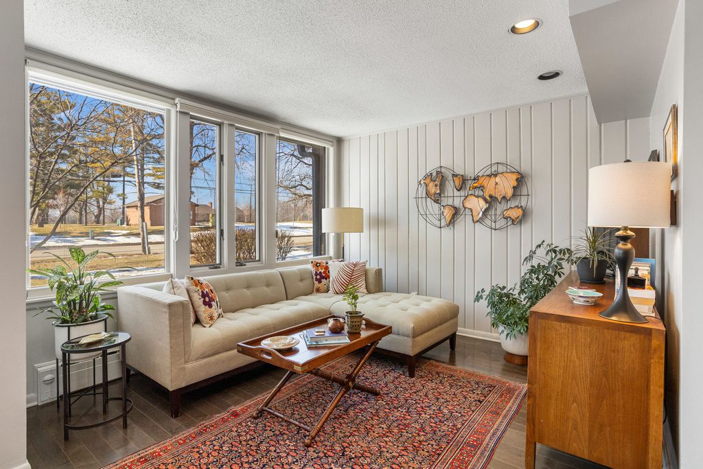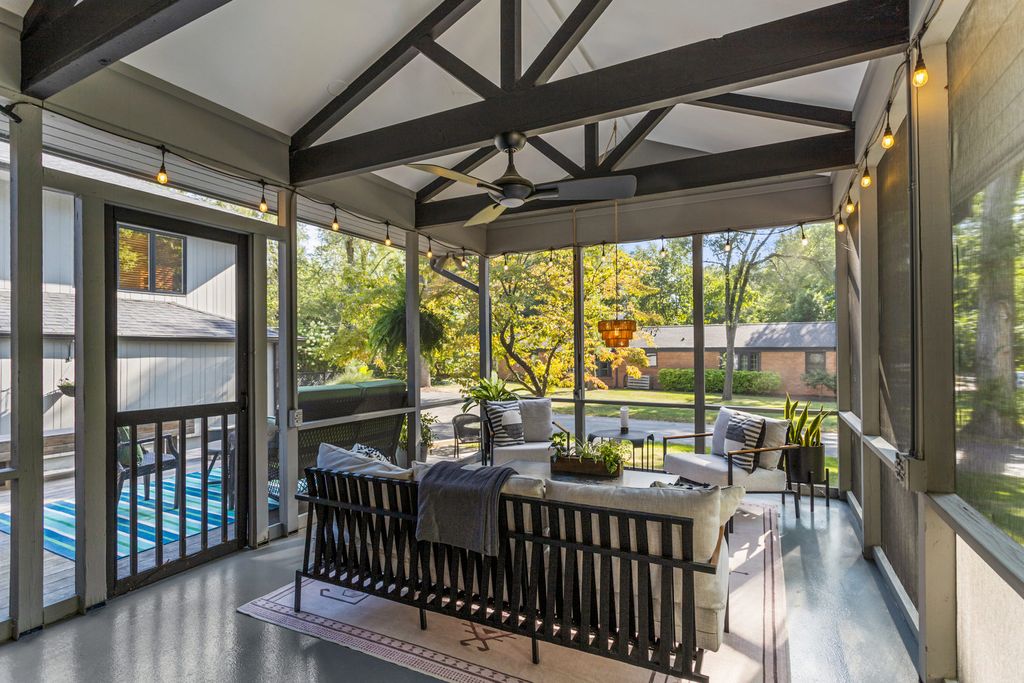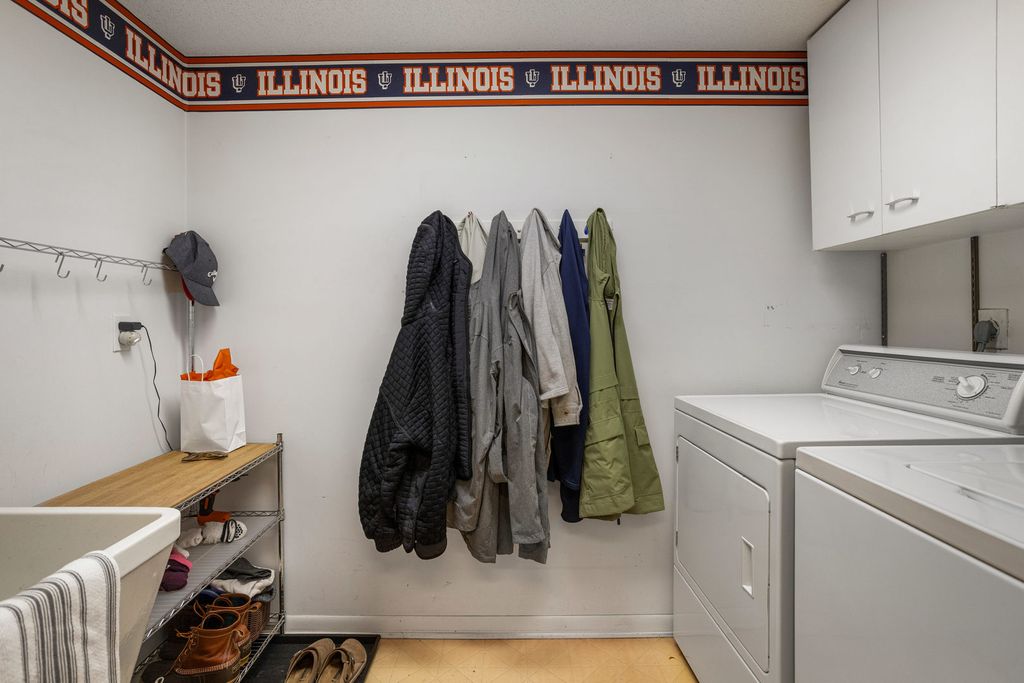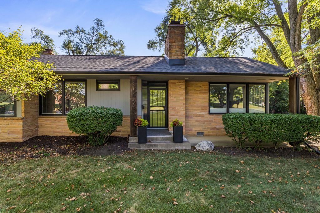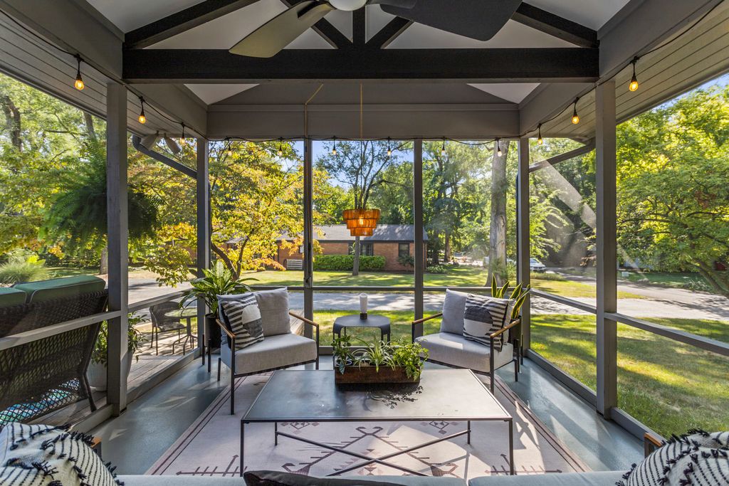 A remarkable Mid-Century Modern era residence with a classic, gracious floor plan and period details that cannot be replaced. Positioned on Fairway Drive across from the country club and minutes from the University of Illinois, this home sits on a magnificent landscaped lot and offers a thoughtful blend of architecture, comfort, and high-quality updates. The main level begins with a sunlit living room featuring a corner fireplace and seamless flow into the dining area. From there, the home opens to a vaulted screened porch (12 x 18), an architectural highlight with a soaring ceiling, wood arches, and direct access to tiered Ipe wood decking. Indoor and outdoor entertaining feel effortless here. The gourmet kitchen is both striking and functional, anchored by a central island with GE Profile gas cooktop and Boos counters. KitchenAid double ovens support larger gatherings, while a standout pantry system by California Closets provides exceptional storage and organization. Adjacent to the kitchen, a charming family room adds everyday livability and keeps guests connected to the heart of the home. The second level features two oversized bedrooms paired with two remodeled baths. The primary bedroom is filled with east and south light through large window panels and includes two separate California Closets storage systems. The primary suite bath rivals new construction, highlighted by a skylit, expansive shower with bench seating and classic tile finishes. The lower level provides another suite with abundant closets and a bath with whirlpool tub, plus a laundry room with tub, furnace closet, and additional utility space. An oversized garage and turnaround driveway complete this impressive offering.