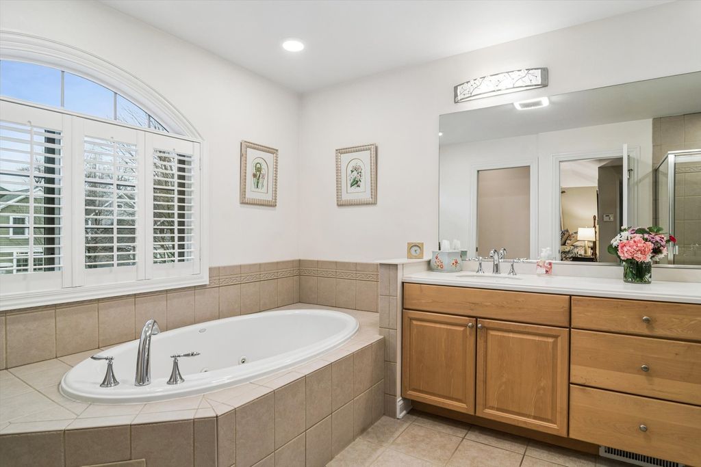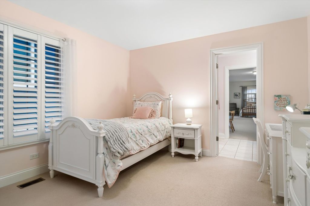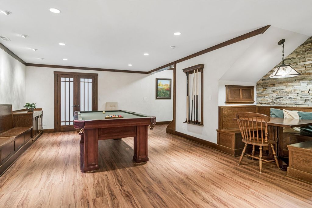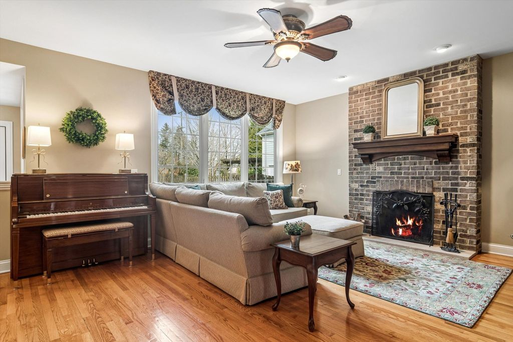 Proudly offered by the original owners, this meticulously maintained home blends timeless craftsmanship with thoughtful, upscale finishes throughout. The well-appointed kitchen features high-end appliances, rich maple cabinetry, a large walk-in pantry, and a convenient butler's pantry with sink-ideal for both everyday living and entertaining. The elegant dining room showcases a charming window seat, crown molding and a tray ceiling with ambient lighting. A private office with pocket doors and custom shutters provides a quiet, refined workspace. The inviting family room centers around a cozy wood-burning fireplace. Upstairs, the spacious primary suite is a true retreat with luxury bath. Two additional bedrooms share a Jack-and-Jill bath, while a fourth bedroom enjoys its own adjoining bath. Completing the second floor is an exceptionally large bedroom featuring five closets offering endless flexibility. The finished basement is designed in a warm mountain-lodge style, highlighted by plaster walls, an alcove ceiling with accent lighting and a built-in booth with bench seating. This level also includes a full bathroom and an additional bedroom, perfect for guests or extended living space. A rare opportunity to own a beautifully cared for home with distinctive character and exceptional living spaces throughout.