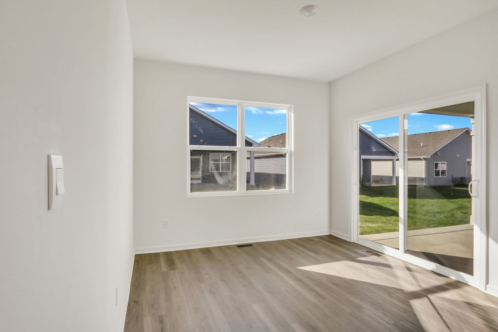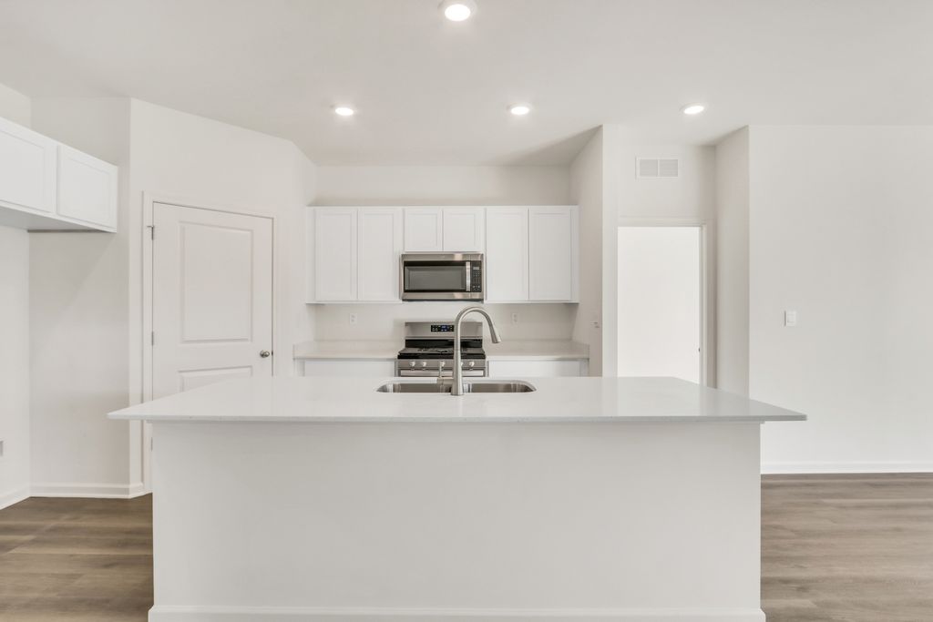 Discover yourself in Plainfield, Illinois, living in a beautiful new Bristol home in our Greenbriar Community at 14561 South Greenbriar Drive, located in Plainfield North School District 202. This lovely ranch home will be ready for a late Summer move-in! This Freedom Ranch Home includes lawn service, snow removal, sod front and back, landscape and front porch and back patio to relax on. The Bristol plan offers 1,744 square feet of living space with 2 bedrooms, 2 full baths, 9-foot ceilings and luxury, easy-to-maintain, scratch and water-resistant vinyl plank flooring. When you first enter the home, you see the secondary bedroom and full bath located up front for privacy. Walking down the hall, is the garage entry with nice landing space to take off your shoes, hang up your coat in the closet adjacent to the laundry room and flex space. The flex space is suitable for an office, hobby room, sitting room, formal dining room or even guest sleeping space. Next you will walk into the open concept luxury kitchen/great room with deluxe quartz countertops, 42" designer cabinets with crown molding and soft-close feature. Large walk-in pantry features shelving for your storage needs and over-sized island with overhang is great for kitchen prep or entertaining and has stainless steel sink with disposal. Enjoy your private get away with your spacious primary bedroom and connecting en suite bathroom. Primary bathroom includes a raised height dual sink, quartz top vanity, and walk-in shower with clear glass shower doors with transom window above for natural light with huge walk-in closet. All Chicago homes include our America's Smart Home Technology, featuring Qolsys IQ4 Panel to control the smart features including a smart video doorbell, keyless entry, programmable Honeywell thermostat, smart door lock, Deako smart rocker switches, and Wi-Fi garage door opener, sod front and back and landscape. Exterior and interior photos are of similar home and model home. Actual home built may vary.