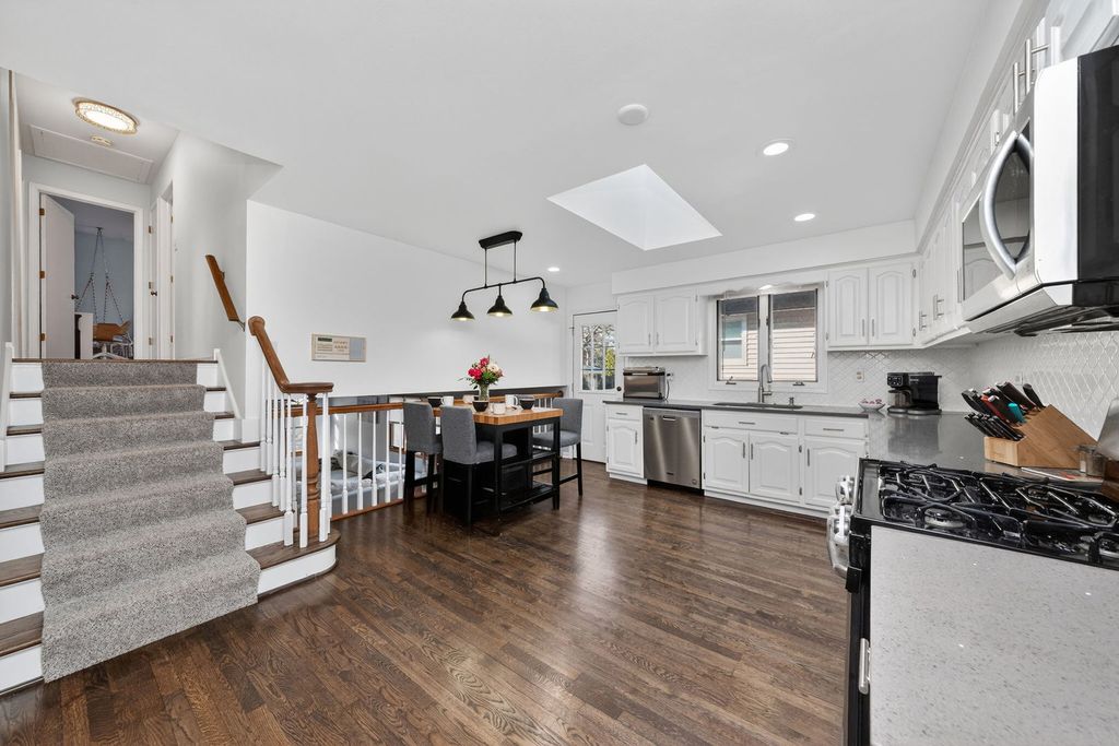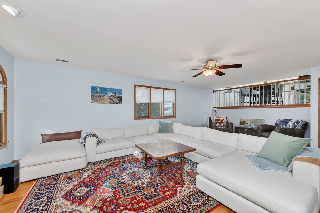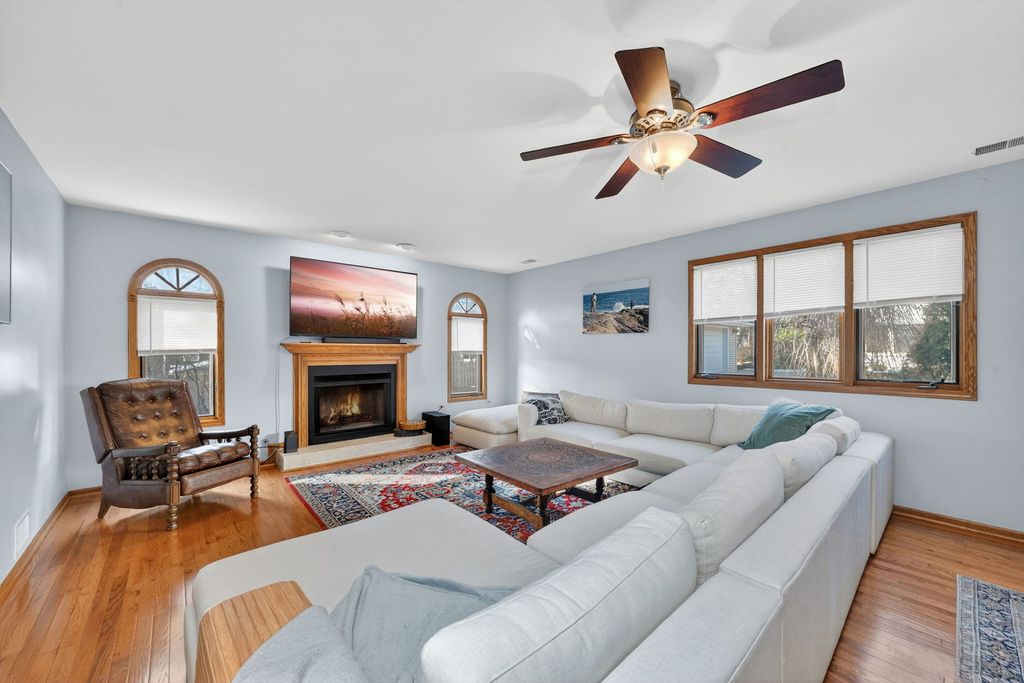 Built in 1993, this beautifully maintained 4BR, 3BA tri-level offers approx. 2,400 sq ft plus a finished sub-basement and crawl space for exceptional storage. Located in Downers Grove just blocks from Advocate Good Samaritan Hospital, the Metra's Burlington Northern line, and I-88/I-355, this home delivers space and convenience. Main level features hardwood floors, vaulted ceilings, and abundant natural light in the living and dining rooms. Updated kitchen with white shaker cabinets, stainless steel appliances (Frigidaire refrigerator 2024), skylights, canned lighting, and overlook to family room. Upper level includes primary suite with walk-in closet and private shower, plus two additional bedrooms and hall bath with double sinks and skylight. Lower level offers spacious family room with wood-burning fireplace (gas starter), fourth bedroom with yard access, and laundry with GE washer and dryer (2022). Finished sub-basement adds flexible living space. HVAC 2024, water heater 2018, all light fixtures replaced approx. within the last year. 2-car attached garage. Come home to Downers Grove!