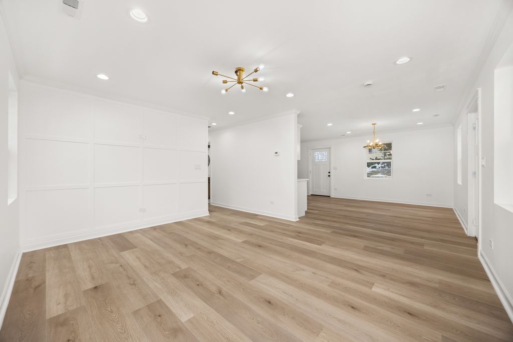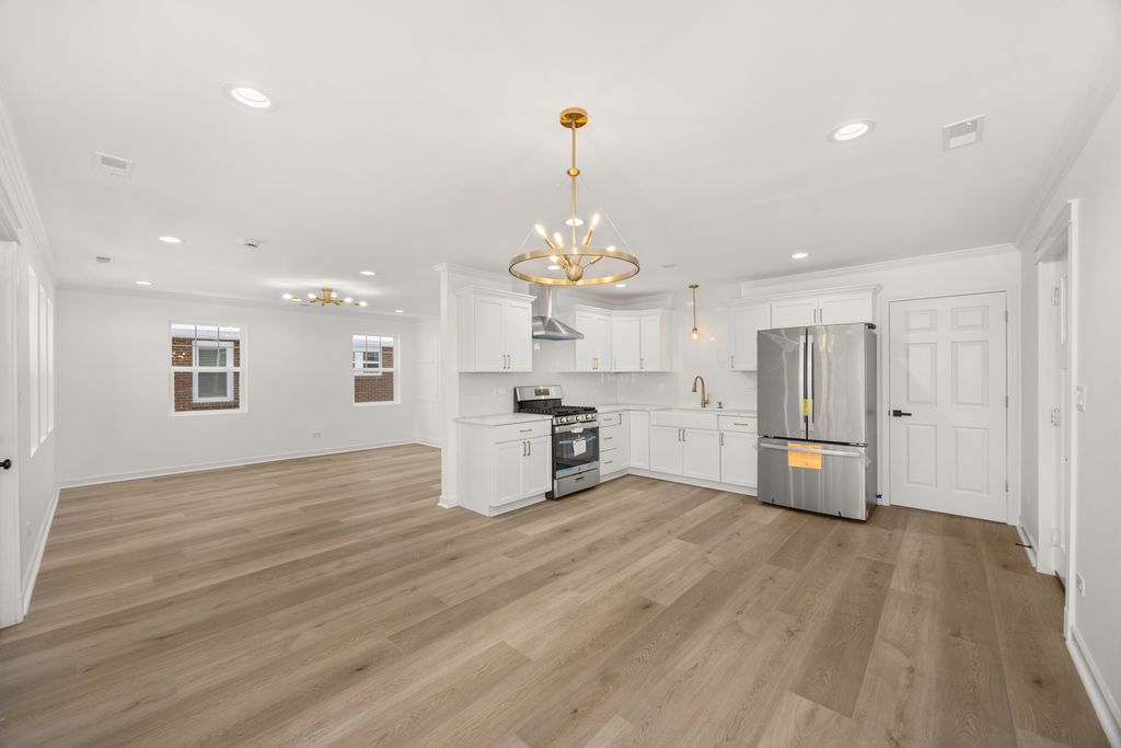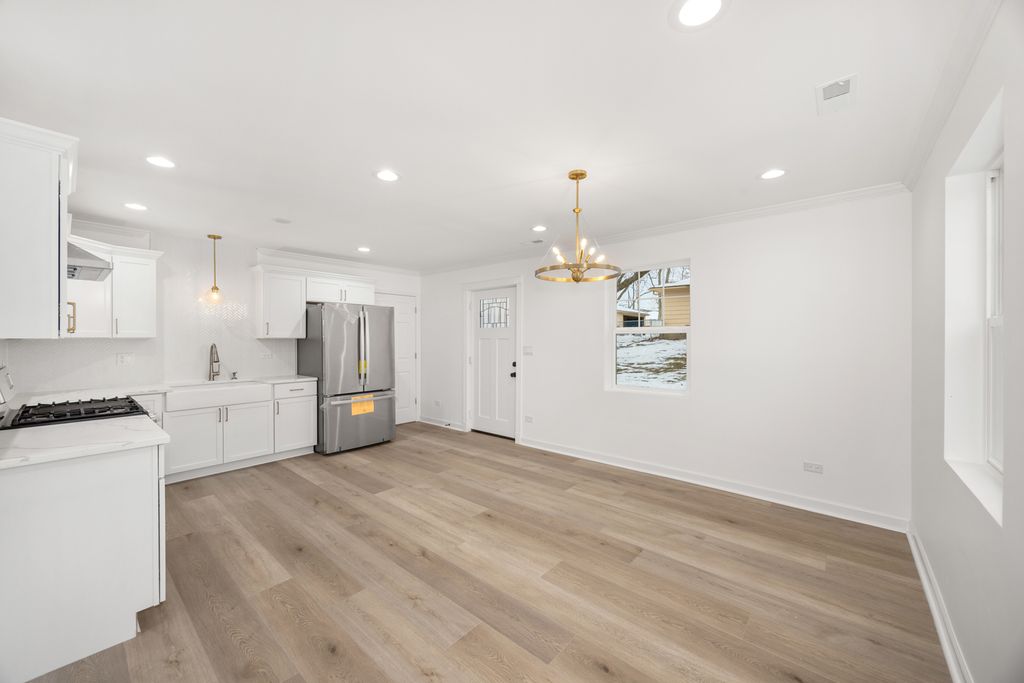 Brand-new construction in Joliet, located in a great area just blocks away from Jefferson St., where you can find anything at your convenience and close to I-80. WILL NOT LAST! Quality craftsmanship and thoughtful design. This 3-bedroom, 1-bath home features a bright, open-concept layout perfect for modern living. Built by a trusted builder known for consistent quality work, this home showcases attention to detail inside and out. Exterior highlights include durable vinyl siding accented with a shaker vinyl and wood apron for striking curb appeal, oversized 6" gutters, a huge 12' x 78' concrete driveway, and a large backyard ideal for entertaining. Inside, enjoy premium finishes such as 2x6 framing throughout, crown molding, six-panel interior doors, and premium luxury vinyl flooring (not standard builder grade). The kitchen features tall custom cabinetry with gold accents, Delta fixtures, quartz countertops, stainless steel appliances, a beautiful farmhouse sink, and a stylish herringbone backsplash. A big grid accent wall for a bold statement. The bathroom is finished with porcelain tile and quality fixtures, completing the home with a clean, modern feel. A rare opportunity to own new construction with standout quality, thoughtful upgrades.