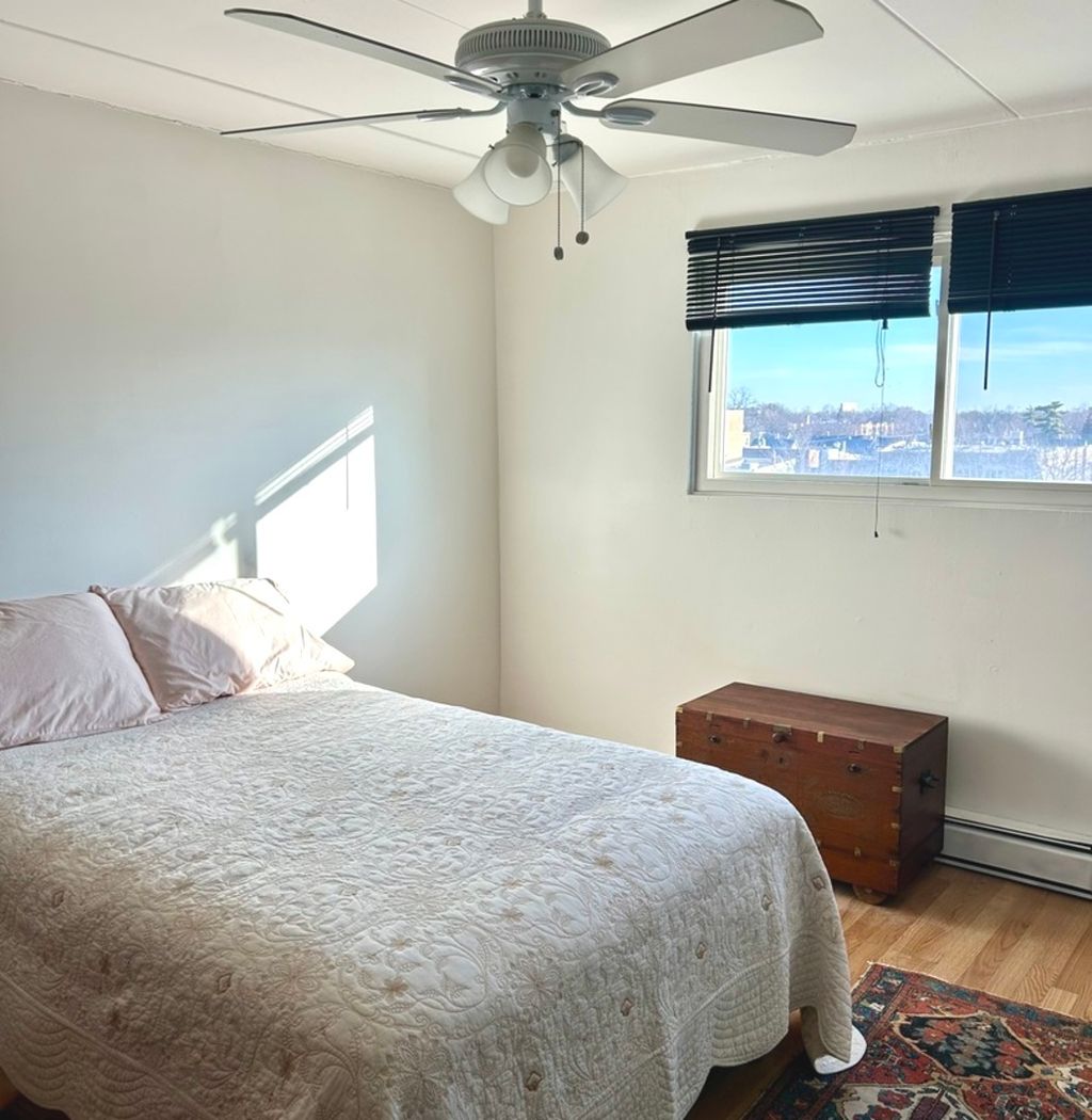 Spacious and bright 1-bedroom, 1-bath condo in the heart of downtown Forest Park! Perched on the 4th floor with beautiful treetop views, this home offers a large sun-filled living room with sliding doors leading to a private balcony - the perfect spot for morning coffee or unwinding at the end of the day.The charming maple cabinet kitchen features ample storage and opens to a spacious adjoining dining area, ideal for everyday living or entertaining. The oversized bedroom includes a generous wall-to-wall closet, and you'll love the abundance of additional closet space throughout the unit.Nice wood-look laminate flooring adds warmth and continuity, while the cute updated ceramic tile bath brings a fresh, clean feel.This well-maintained elevator building offers a large first-floor laundry room and is pet friendly(pet weigh limit 15 pds.). A dedicated parking space is included and conveniently located close to the front entrance.Unbeatable downtown Forest Park location - easy walking distance to the Blue Line, Green Line, and Metra, plus quick access to the expressway. Enjoy being just steps from popular restaurants, coffee shops, boutiques, and year-round festivals. A wonderful opportunity to own in one of the most vibrant and walkable communities in the area!