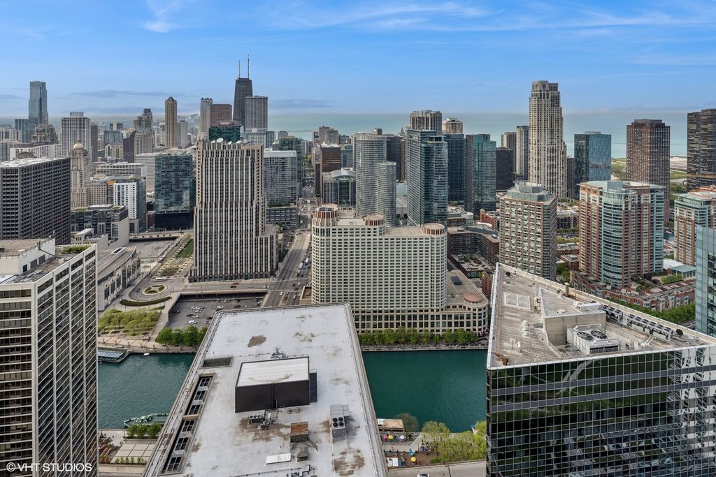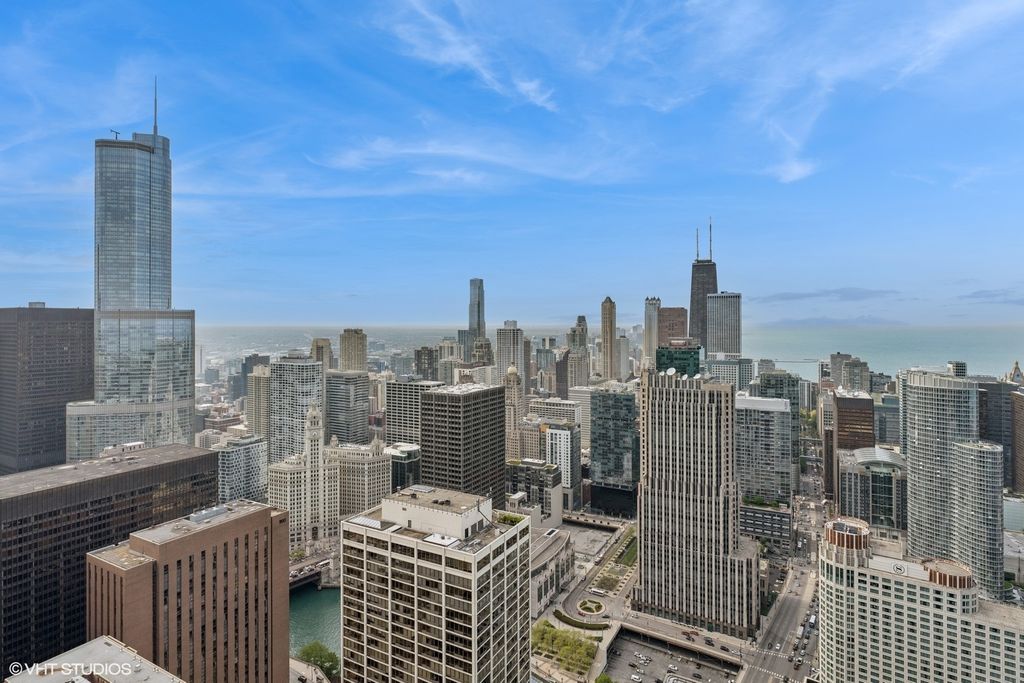 Sitting 62 floors above the city in Aqua, this oversized one-bedroom plus den offers panoramic north, east, and west views with a massive 37-by-7-foot private balcony. The layout includes 1,210 square feet of well-designed space with floor-to-ceiling windows, walnut hardwood floors, solid-core wood doors, and updated lighting throughout. The den works well as a home office or guest space. The kitchen features 42-inch Snaidero Italian cabinetry and stainless appliances. The primary suite includes a walk-in closet with custom built-ins, and the bathroom has been extensively updated. Additional highlights include in-unit laundry and a large storage closet. Aqua offers full-service living with indoor and outdoor pools, hot tubs, a fitness center, Pilates studio, theater, herb garden, business center, and 24-hour door staff. Monthly assessments include nearly all utilities and services. Parking is available for rent. Located in Lakeshore East near the Riverwalk, Millennium Park, and the lakefront. Easy access to dining, transit, and downtown offices. A rare opportunity to live this high in the sky.