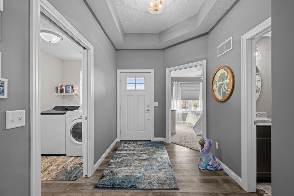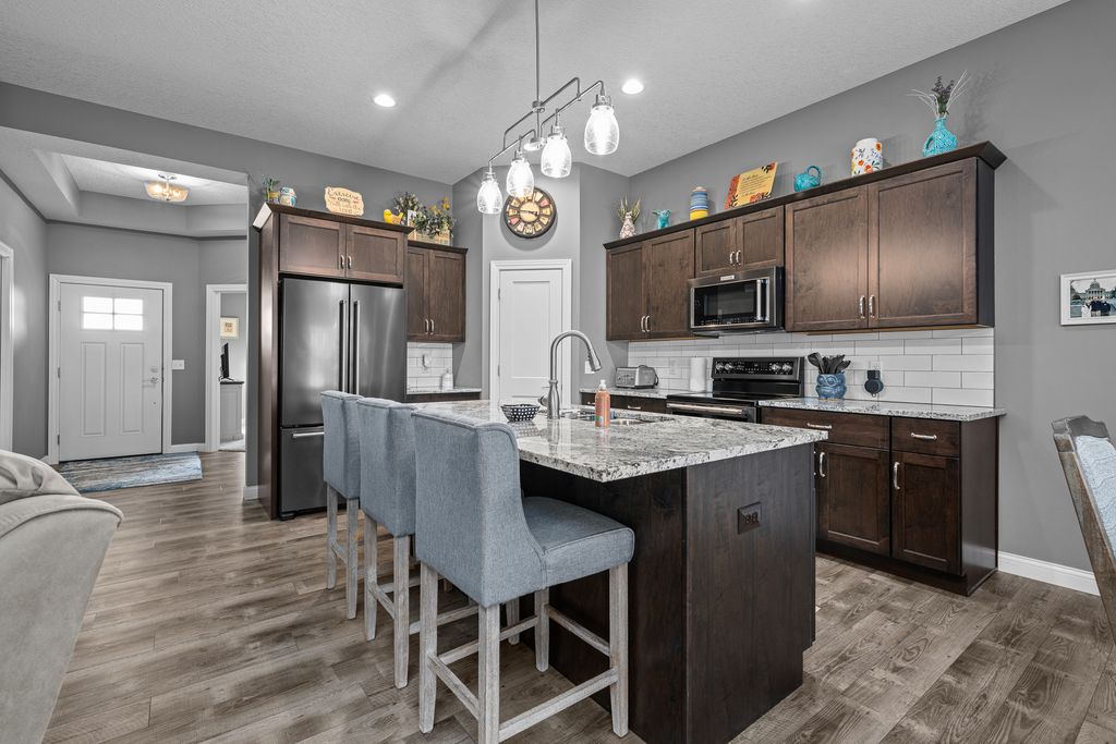 An amazing floorplan for anyone looking towards retirement and living on one level. Zero, no step entry. 2 car garage, stepless, with extra wide length. Beautiful 4 season room leading to a covered deck. Fireplace with a stone front. Laundry room is awesome entering into primary bedroom with a huge closet that boasts built-ins. Lot to the east of the home contains underground system for water retention feeding pond. One wonderful private lot.