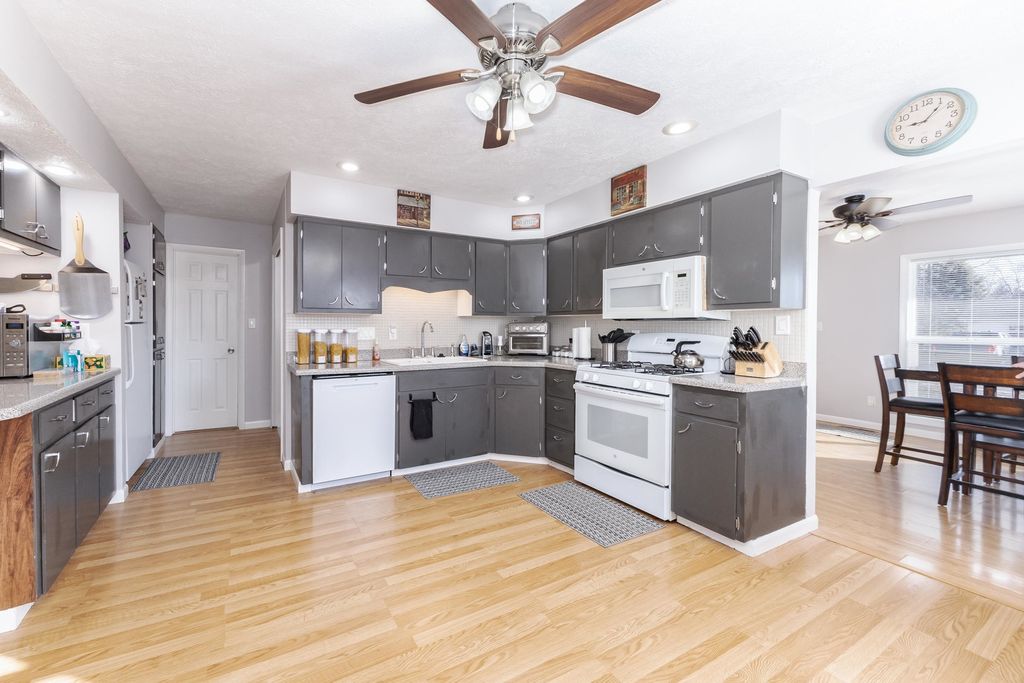 Do NOT Miss this opportunity to own this unique 3 bedroom, 3 family area home in Downs. You will love the amount of space this home has! Beautiful family/dining room complete with a fireplace. Previous garage was converted into a large living room and storage area. You will love the kitchen with painted cabinets and sit down bar with extra storage. Your laundry area is located right off the kitchen and the washer and dryer stay. The home is being sold AS IS.