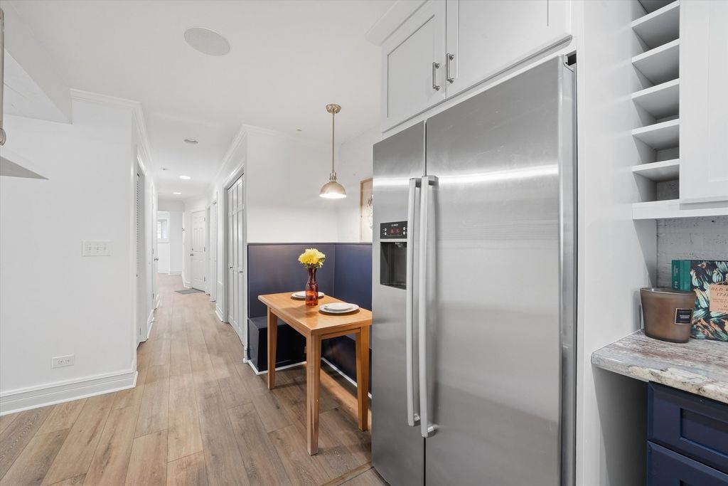 Welcome to this beautifully maintained condo in one of Logan Square's most vibrant neighborhoods. This spacious 2-bedroom, 2-bath home with a den is the perfect blend of character and modern comfort. Newly renovated and rehabbed with high end finishes throughout, the unit features new flooring, updated bathrooms, and a refreshed kitchen, offering a move-in-ready experience with thoughtful modern upgrades. The home features a massive living area anchored by a cozy fireplace and custom built-in shelving-ideal for relaxing or entertaining. The chef-inspired kitchen boasts exposed brick, premium stainless steel appliances, granite countertops, upgraded cabinetry, and a built-in breakfast nook for casual dining. Need a home office, creative space, or guest room? The oversized den is ready to adapt to your lifestyle. The primary suite includes a private en-suite bath and generous closet space. Enjoy rare efficient radiant heat, in-unit laundry, and custom closets offering tons of storage. Additional features: Wired for sound and smart home ready Private back patio-perfect for summer grilling or unwinding outdoors Gated parking spot INCLUDED. Unbeatable location-just steps to the Blue Line, local hotspots, top-rated restaurants, and everything Chicago has to offer. This is urban living at its best. Priced to sell!