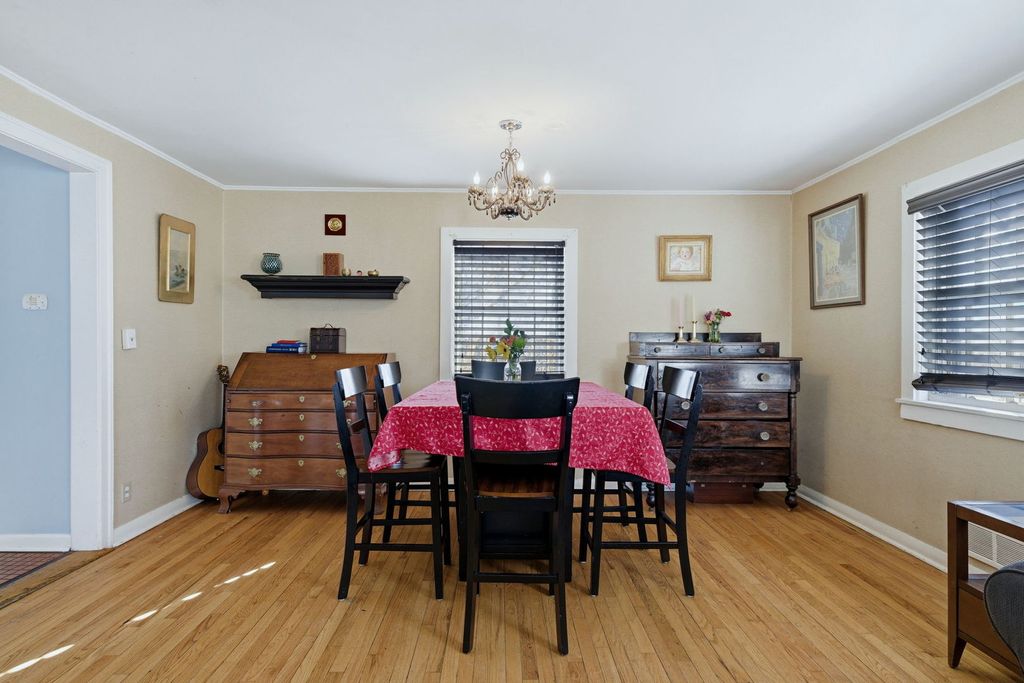 Welcome home to this charming 4-bedroom, 1.1-bath in-town gem with an unbeatable location-just minutes to the train, parks, dining, shopping, and all the fun downtown has to offer! Step inside to a bright and welcoming living and dining room combo, perfect for everyday living and entertaining. The kitchen offers a beautiful window view overlooking the backyard and nearby park, bringing in tons of natural light. You'll love the added touches of a beverage bar and convenient mudroom, making daily life a breeze. The main level features a TWO first-floor bedrooms and full bath, ideal for guests, related living, or a home office setup. Upstairs you'll find two additional bedrooms and a half bath with the potential to expand into a full bath-an incredible opportunity to add value and customize to your needs. Downstairs, the unfinished basement is a blank canvas ready for your vision-create a recreation room, workout space, workshop, or extra storage. Outside, enjoy a fully fenced backyard, a covered patio for relaxing or grilling, and easy access to the garage. This home offers space, location, and endless potential-don't miss your chance to make it your own!