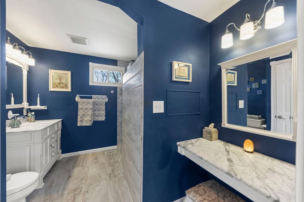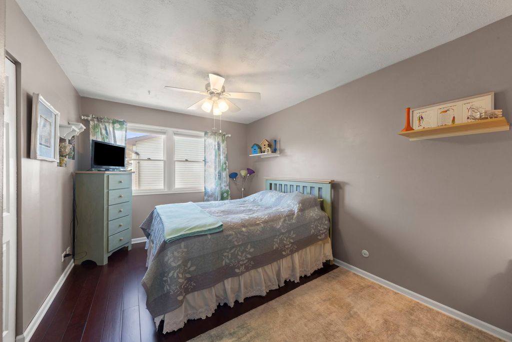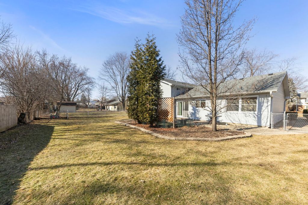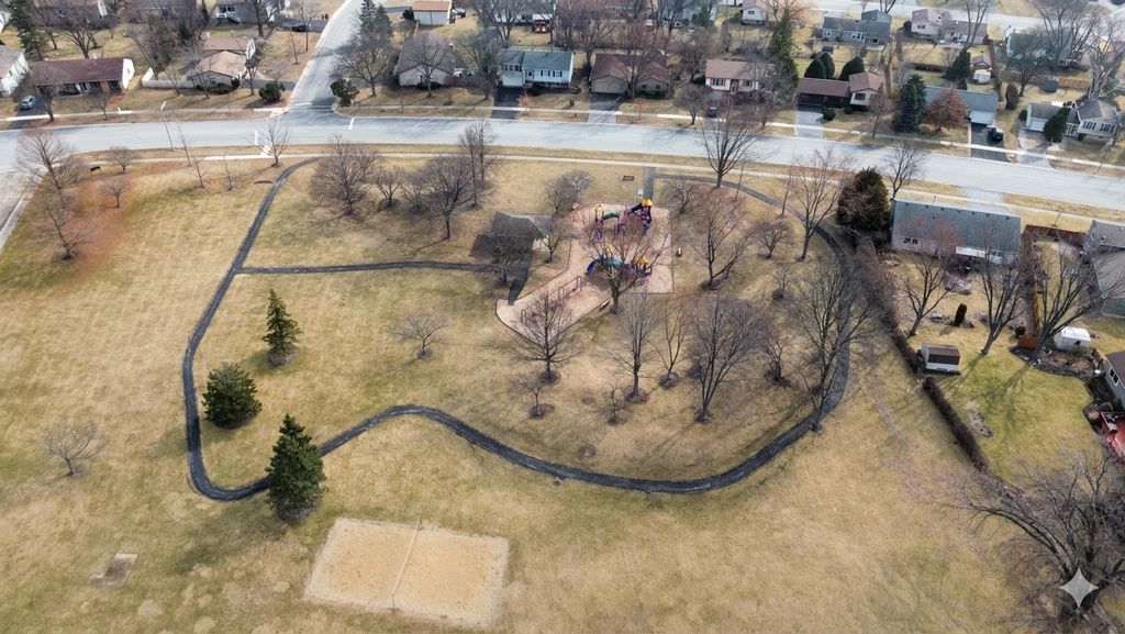 Welcome to this well-maintained split-level home offering 4 bedrooms and 2.5 baths in a location that's hard to beat. Just across the street from Old Mill Grove Park and playground and around the corner from the elementary school, convenience and community are right outside your door. Inside, the home features beautiful hickory flooring throughout the living room, dining room, hallway upstairs, and primary bedroom, creating a warm and cohesive feel. The eat-in kitchen is designed for both everyday living and entertaining with quartz countertops and plenty of space for dining, with a sliding door to the backyard. Upstairs you'll find generously sized bedrooms, including a master with an updated bath and walk-in closet. You also have a full shared bath on the 2nd level as well. Lower level offers a comfortable family room, a fourth bedroom, and half bath, perfect for guests or just relaxing. Step outside to a fenced backyard with a paver brick patio and privacy trellis, ideal for relaxing evenings or weekend gatherings. Major updates include a roof (2017) and HVAC system (2018), giving buyers added peace of mind. A great home, solid updates, and a location near parks and schools make this one a must-see.