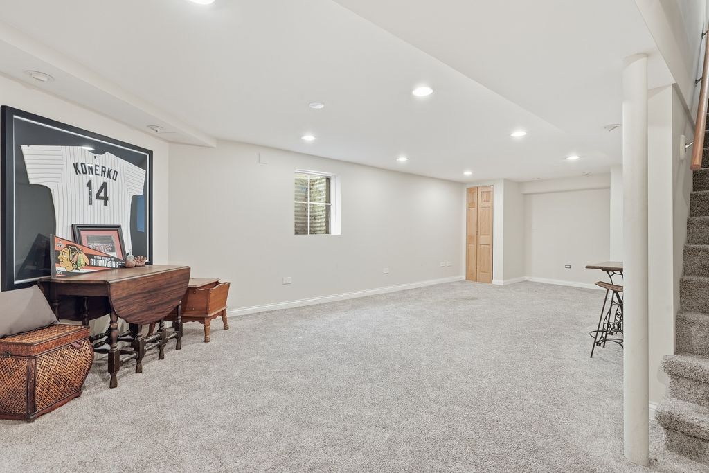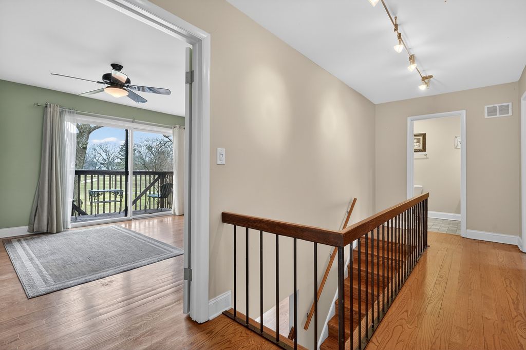 Beautiful townhome with mid century modern touches set on a gorgeous golf course location. Step into a spacious foyer with a large closet. Mid century modern wood and steel staircase highlights the entry. The Kitchen boasts custom 42 inch wood cabinets, lots of drawers, a potfiller by the stove, an extra deep stainless steel sink, under cabinet microwave and pull out racks next to the stove. All stainless steel appliances and vent hood are included. Dark granite counters. The blue green mosaic tile backsplash has a calming feeling. Under cabinet lighting, combined with in cabinet lighting in the glass front cabinets and the pendant lights above the counter seating/serving area is stunning . Plus find spot lighting in the kitchen, living room, dining room and basement. Real hardwood floors and 6 inch baseboard trim throughout the first and second floors. The kitchen dining area has sliding doors leading to the first brick patio 13x11.. The living room is highlighted by a wall of brick with a fireplace, another wall of windows and sliding doors overlooking the expansive golf course views. The back yard has a low wood fence, more privacy with mature trees, and landscape with flowering perennials plus a 17 x 24 brick patio to enjoy. 3 separate outdoor spaces to enjoy. Main floor has an upgraded powder room with unique fossil look type ceramic floor. Upstairs are 3 large bedrooms. 2nd and 3rd rooms each have two sets of double doors for 12 foot closets with wooden organizers and lighting, plus each room has a ceiling fan overhead. A hall full bath and linen closet serves those two bedrooms The Primary bedroom boasts a private 12x5 balcony overlooking the course and provides a view of the pond. There is a 10x5 walk in closet with shelves and hanging space. The primary bath has a floating wood vanity, granite counters and a stainless steel sink. The Basement is finished 27x13 and a great area to relax. 8'x 4' bar/storage area. The laundry room includes the washer & dryer and laundry sink with some store room but. do not miss the additional storage access to the 9 foot by 20 foot cement crawl space. New roof and fiber cement siding in 2024 through the association. Hot water heater replaced 2023. The lifestyle that this home provides is exceptional with a large, sparkling, indoor swimming pool, an big outdoor pool & sundeck, a Clubhouse with a party room is also available to reserve. All overlooking rolling landscaped views with mature trees. Peace, healthy activities, serenity, space, near so much, shopping, groceries, 3 mins to Metra. This is an estate the "as is" addendum is required. Lovely home located in a great school district. Fantastic Location! Location! Location!