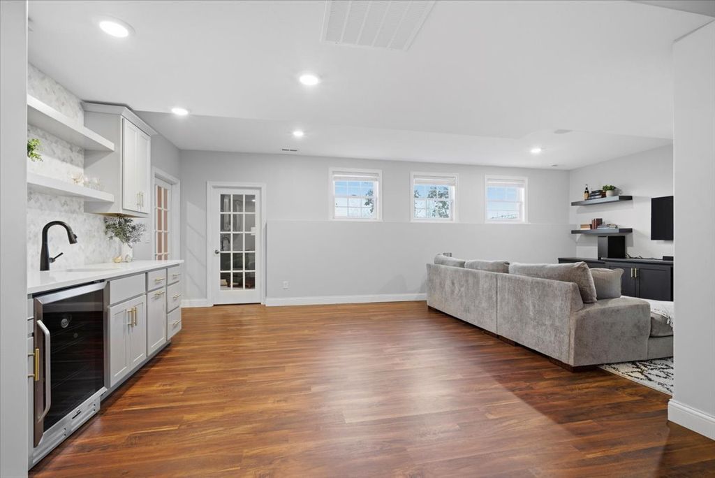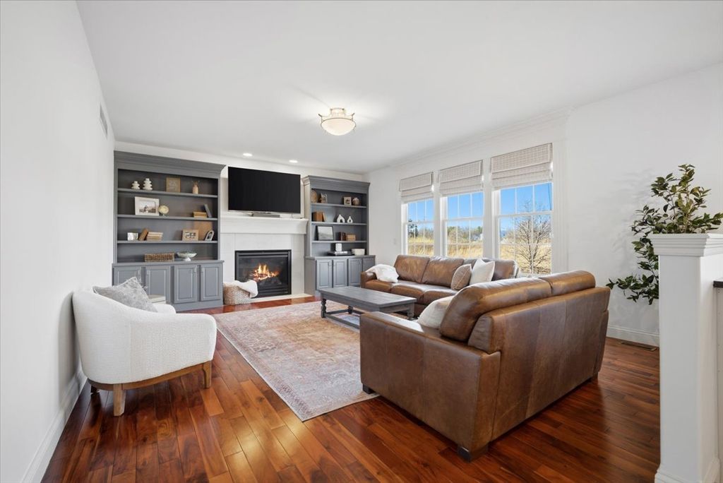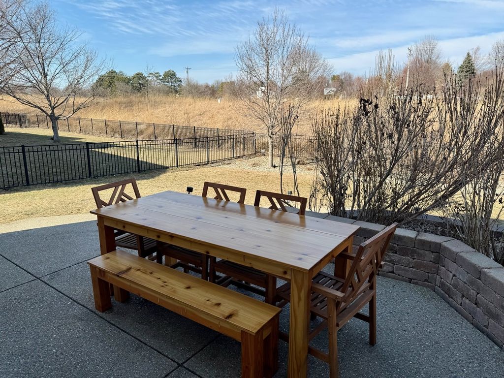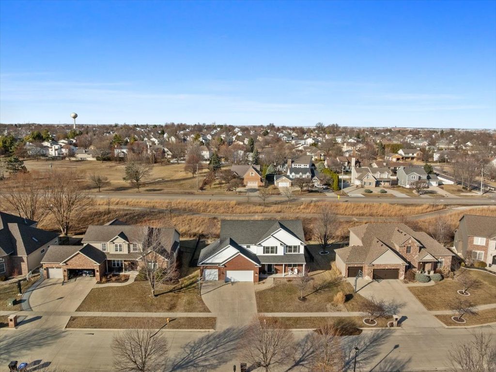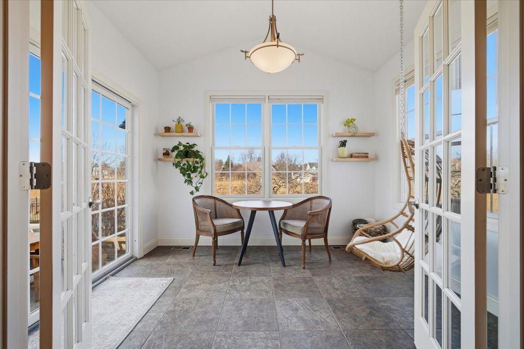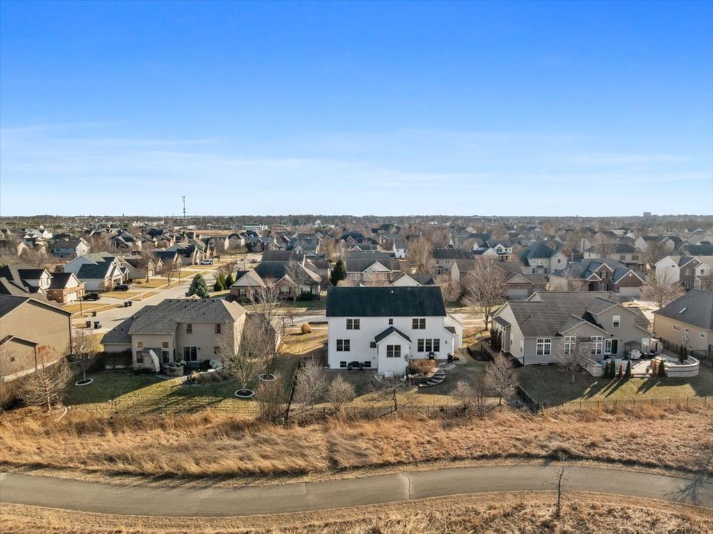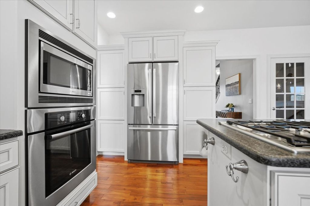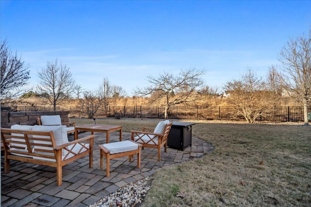 Beautifully updated and thoughtfully designed, this five bedroom home offers three finished levels of living space, a private office, dedicated workout room, four seasons room and no backyard neighbors with direct gated access to neighborhood trails. Ideally located in sought after Tipton Trails, the home blends timeless design with elevated everyday comfort. Hardwood floors, custom trim, and connected gathering spaces create a warm and inviting flow. The dining room with tray ceiling opens through French doors to the living room, while the kitchen features leathered charcoal granite countertops, custom cabinetry with pull out shelving, island seating, stainless steel appliances, Bosch dishwasher installed in 2024, and Bosch refrigerator installed in 2022. An extended cabinet area with beverage refrigerator creates a perfect coffee or drink station. The four seasons room offers peaceful views and the family room includes built ins and a gas fireplace. A drop zone off the garage provides custom built ins and a large walk in storage closet. Main living areas and the primary suite were freshly painted in 2024. Upstairs, each bedroom includes a walk in closet. The private primary suite features an oversized closet and spa inspired bath with heated floors, soaking tub, double sinks, and custom tiled shower. The second floor laundry includes a utility tub and LG washer and dryer installed in 2023. The finished lower level, renovated in 2022, offers a fifth bedroom, full bath, secluded office, dedicated workout room, and a family room with custom media cabinetry and wet bar with quartz surfaces, beverage refrigerator, sink, and marble backsplash. Daylight windows flood this area with sunlight. Tiered outdoor dining and fireside spaces, thoughtful landscaping, and private trail access extend the living experience outside. The oversized three car garage includes a custom workbench and new ceiling storage. Geothermal heating and cooling, whole house generator, tankless water heater, radon mitigation system, water backup sump pump, and central vacuum provide efficiency and peace of mind.