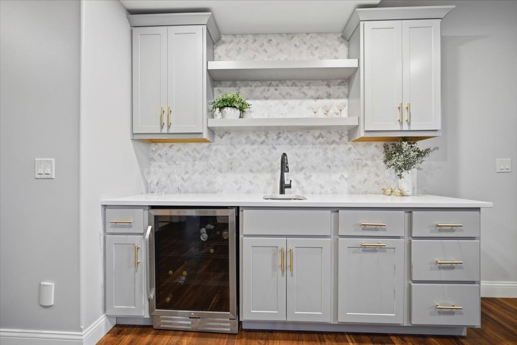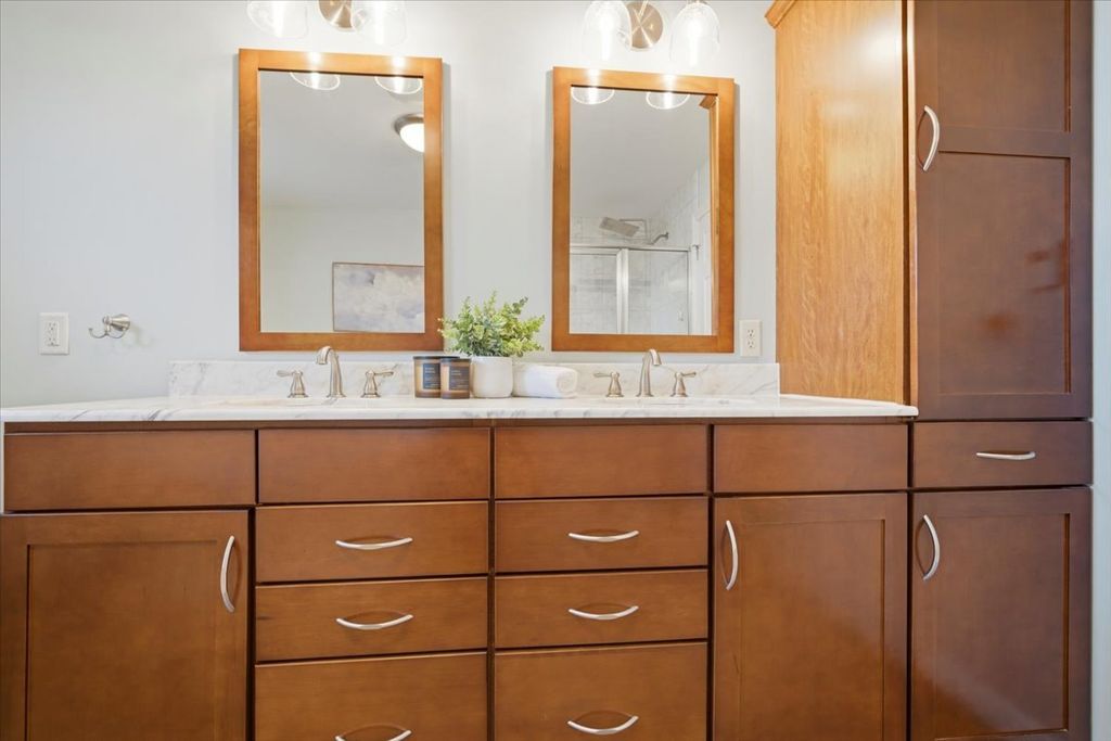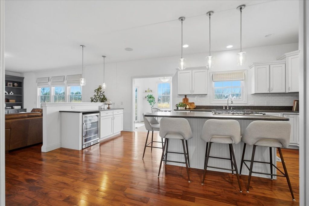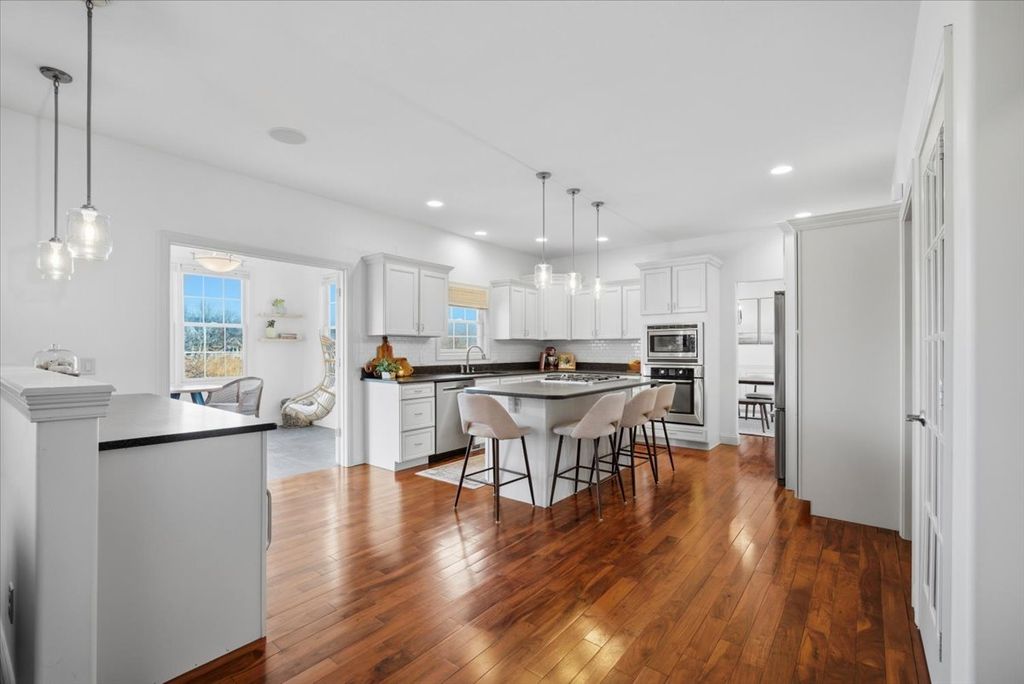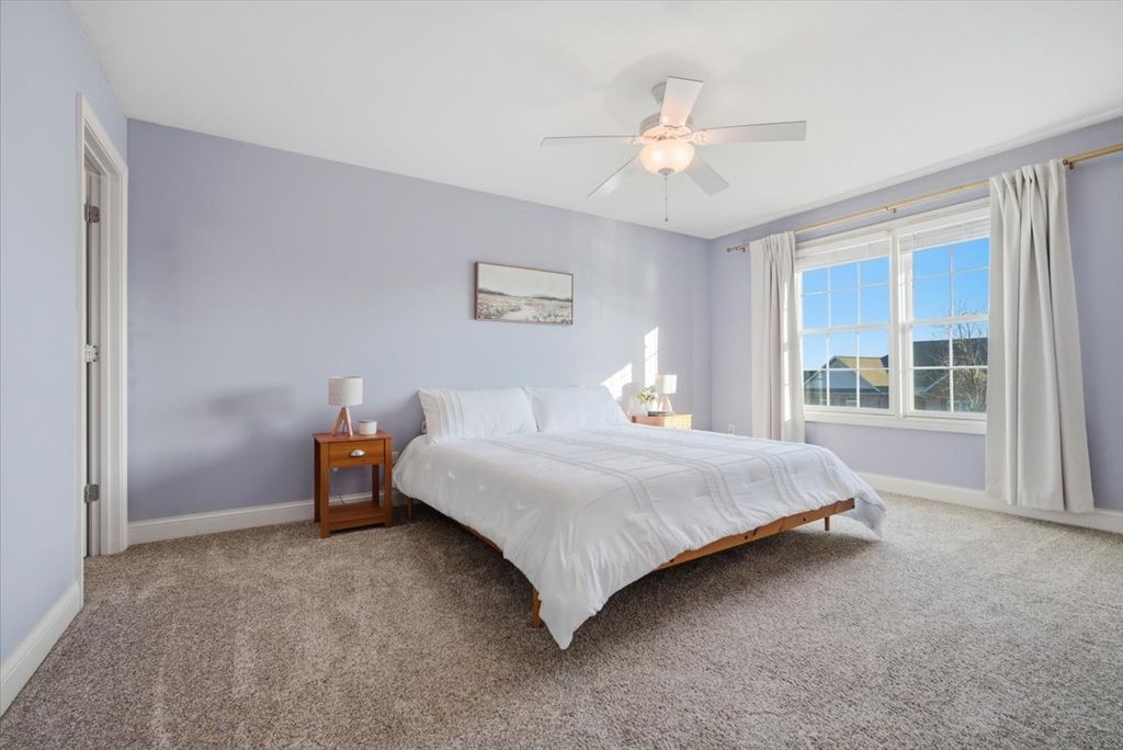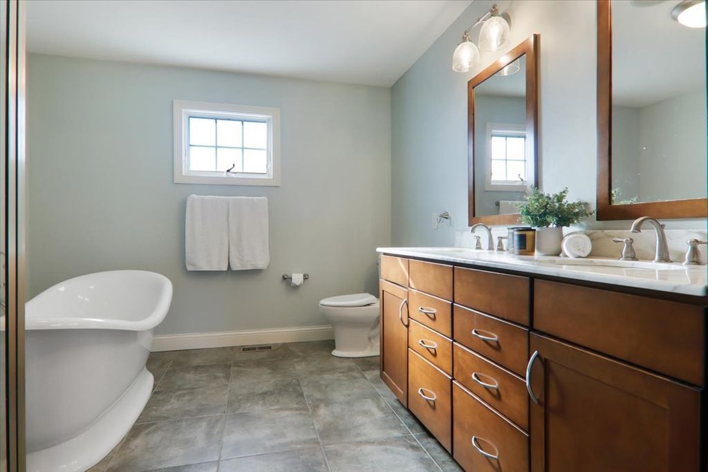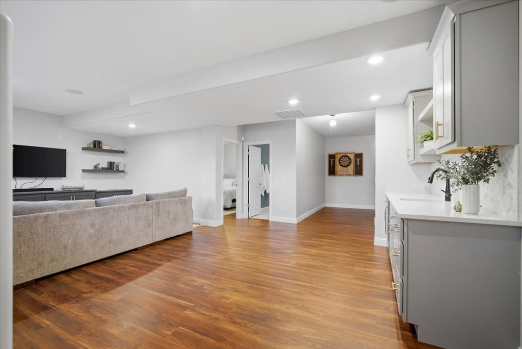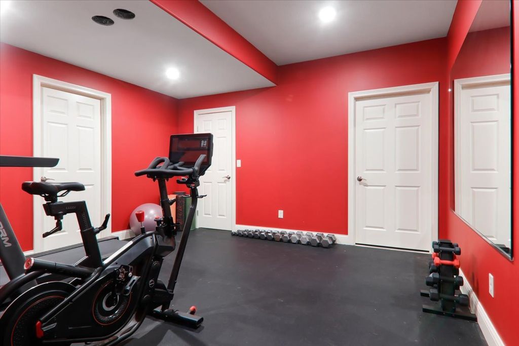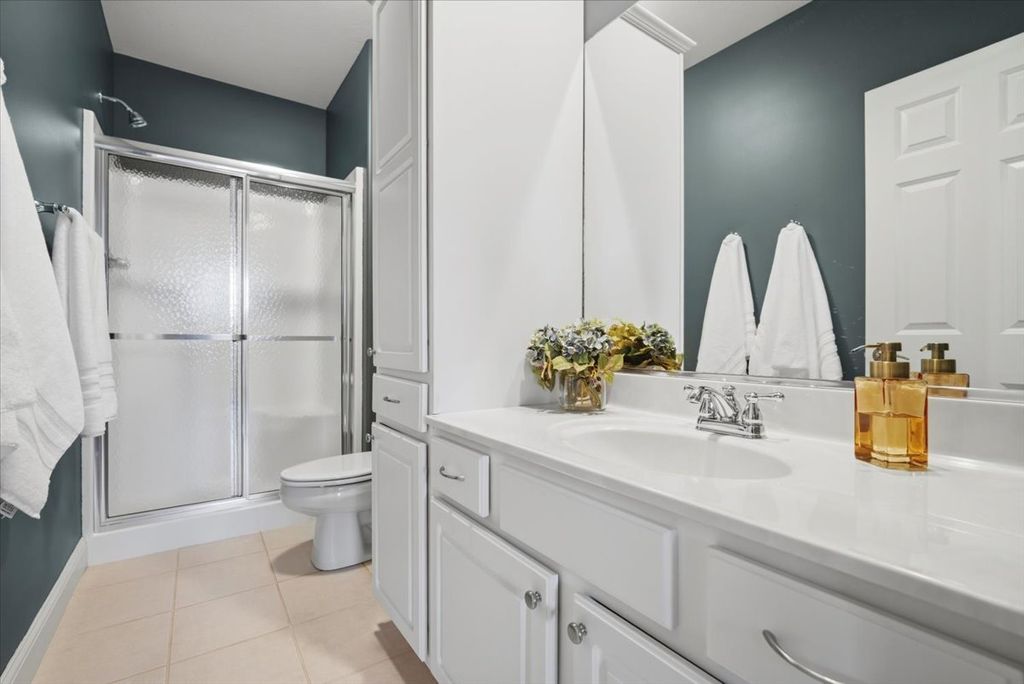 Beautifully updated and thoughtfully designed, this five bedroom home offers three finished levels of living space, a private office, dedicated workout room, four seasons room and no backyard neighbors with direct gated access to neighborhood trails. Ideally located in sought after Tipton Trails, the home blends timeless design with elevated everyday comfort. Hardwood floors, custom trim, and connected gathering spaces create a warm and inviting flow. The dining room with tray ceiling opens through French doors to the living room, while the kitchen features leathered charcoal granite countertops, custom cabinetry with pull out shelving, island seating, stainless steel appliances, Bosch dishwasher installed in 2024, and Bosch refrigerator installed in 2022. An extended cabinet area with beverage refrigerator creates a perfect coffee or drink station. The four seasons room offers peaceful views and the family room includes built ins and a gas fireplace. A drop zone off the garage provides custom built ins and a large walk in storage closet. Main living areas and the primary suite were freshly painted in 2024. Upstairs, each bedroom includes a walk in closet. The private primary suite features an oversized closet and spa inspired bath with heated floors, soaking tub, double sinks, and custom tiled shower. The second floor laundry includes a utility tub and LG washer and dryer installed in 2023. The finished lower level, renovated in 2022, offers a fifth bedroom, full bath, secluded office, dedicated workout room, and a family room with custom media cabinetry and wet bar with quartz surfaces, beverage refrigerator, sink, and marble backsplash. Daylight windows flood this area with sunlight. Tiered outdoor dining and fireside spaces, thoughtful landscaping, and private trail access extend the living experience outside. The oversized three car garage includes a custom workbench and new ceiling storage. Geothermal heating and cooling, whole house generator, tankless water heater, radon mitigation system, water backup sump pump, and central vacuum provide efficiency and peace of mind.