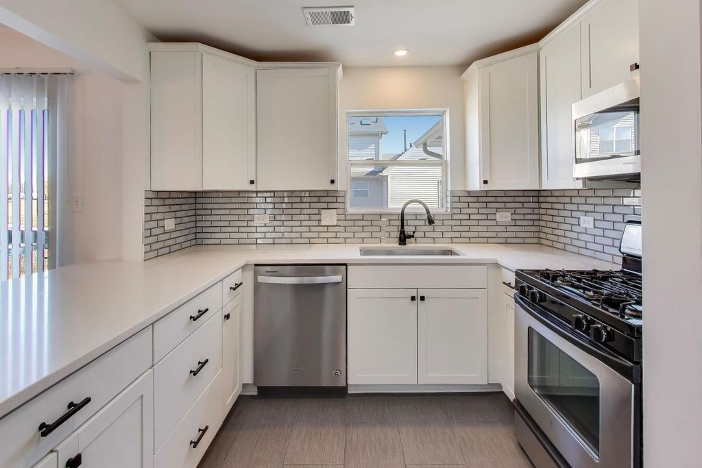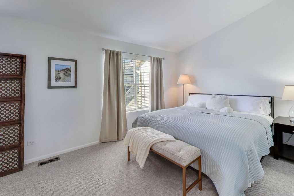 Beautifully updated 2 bedroom, 1.5-bath townhome in the Broken Arrow Navaho Subdivision offers modern finishes and a bright, welcoming layout. A sun filled living room flows seamlessly into a spacious dining area. The updated kitchen features quartz countertops, classic shaker cabinetry, a convenient breakfast bar, and stainless steel appliances, including a new refrigerator. A main-level half bath just off the kitchen and sliding glass doors off the dining room lead to a deck with views of Broken Arrow Golf Course. Newer carpeting runs throughout the second level with two generously sized bedrooms and a full bathroom. The sundrenched primary bedroom boasts cathedral ceilings and two closets. The refreshed laundry room includes a new washer and dryer, along with additional storage space under the stairs. Enjoy the convenience of an attached two-car garage and a quiet setting near the end of a cul-de-sac. Located within Lockport Township High School District and just minutes from charming downtown Lockport's restaurants and shopping, as well as easy access to I-355. A charming, move-in-ready home in a peaceful location.
