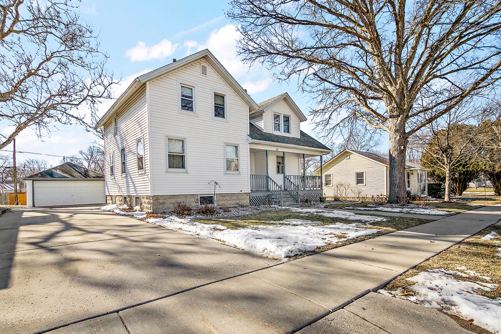 Charming 2-story farmhouse-style home nestled in the heart of Peotone, blending timeless vintage character with modern comfort. This impeccably maintained residence offers 3 spacious bedrooms plus a versatile main-level bonus room - perfect for a 4th bedroom, home office, or flex space to fit your needs. The updated kitchen features abundant cabinetry and generous counter space, ideal for everyday living and entertaining. A welcoming covered front porch enhances the home's curb appeal while creating the perfect spot to relax and enjoy the neighborhood atmosphere. The full basement expands your living potential with a 3/4 bath, laundry area, and ample storage or recreation space. Outdoors, enjoy a large backyard patio surrounded by mature trees and professional landscaping - ideal for gatherings or quiet evenings at home. Located within walking distance to the elementary, junior high, high school, local parks, and charming downtown Peotone shops and dining. Convenient access to I-57 in under 5 minutes makes commuting a breeze. Move-in ready and meticulously cared for - ready to welcome its new owners!