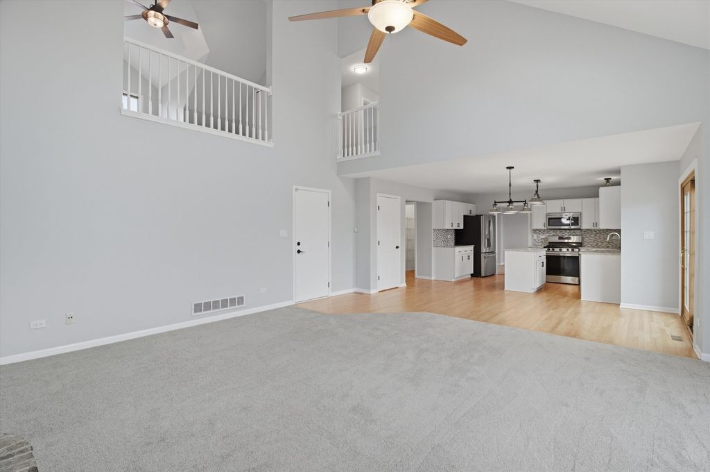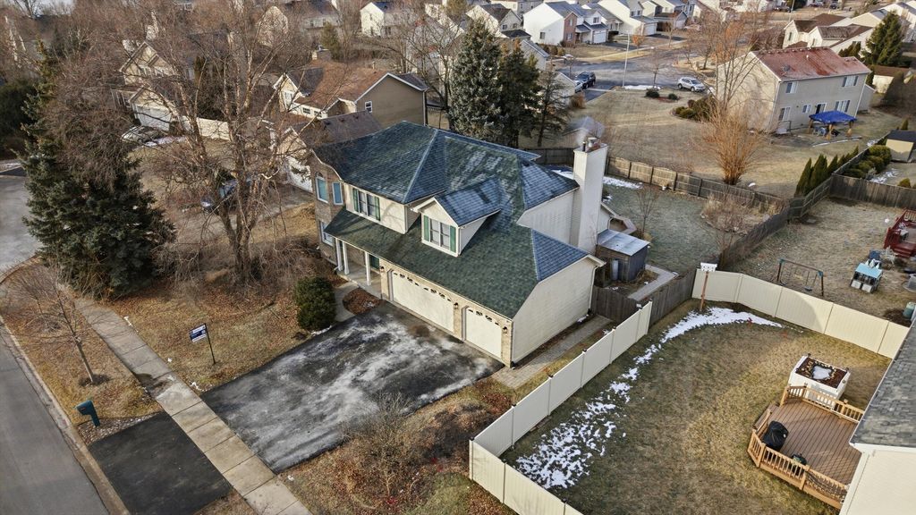 Welcome to this beautifully refreshed two-story home in desirable Pheasant Chase offering approximately 3,200 square feet of living space! Freshly painted throughout with brand-new carpeting and newly refinished light oak hardwood floors, this home is truly move-in ready. The eat-in kitchen features stainless steel appliances, quartz countertops, modern backsplash, walk-in pantry, and updated lighting. The dramatic two-story family room is anchored by a wood-burning fireplace and enhanced by soaring ceilings, skylights, and oversized ceiling fan, creating a bright and open gathering space. Upstairs, the spacious 22x12 primary suite includes a bay window, large walk-in closet, and an updated bath with double sinks, refreshed vanity, lighting, fixtures, and a double shower. The additional bathrooms have also been updated with new vanities, sinks, and lighting. Three additional generously sized bedrooms offer ample closet space, including a versatile fourth bedroom with loft-style overlook to the family room. Enjoy outdoor living in the fully fenced backyard featuring a 24-foot above-ground pool, expansive deck, and patio perfect for entertaining. A three-car garage and full unfinished basement provide abundant storage and future expansion potential. Conveniently located just minutes from public elementary, middle, and high schools, parks, shopping, dining, and quick access to I-55 and I-355 for easy commuting. Don't miss this opportunity to own a spacious, updated home in a prime Bolingbrook location!