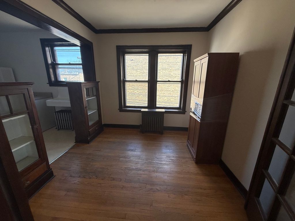 Spacious unit with full size windows and tons of sunlight. Separate dining room and hardwood floors throughout. Heat included. Cats OK. Street parking. Laundry in building!