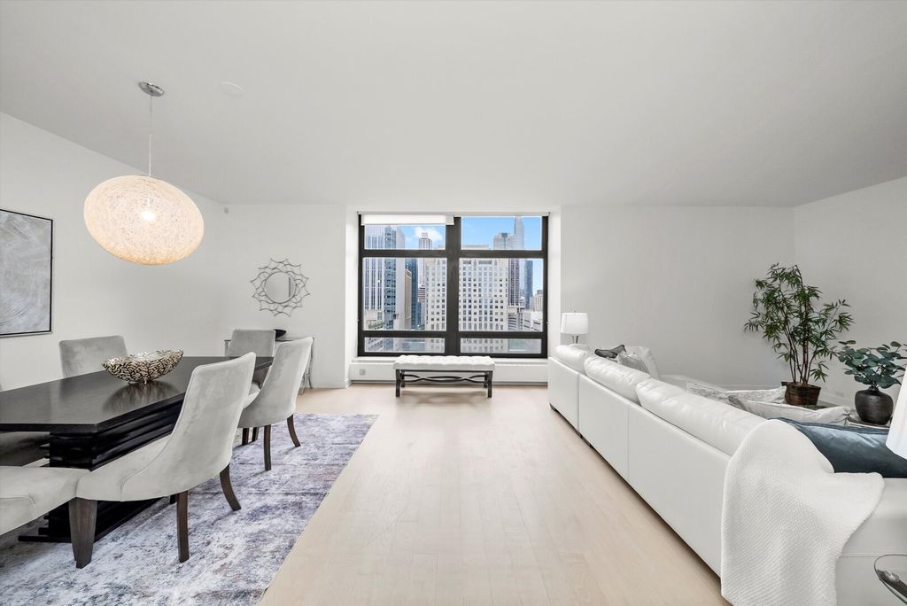 Welcome to a sophisticated reimagining of 2,100 square feet of elevated city living. This exceptional 2 bedroom, 2.5 bath residence blends the elegance of 1920's Gothic architecture with a clean, modern sensibility resulting in a truly one-of-a-kind home on iconic Lake Shore Drive. Once inside, ten foot ceilings and expansive picture windows frame striking city views and unforgettable sunsets, while a wide open floor plan offers the perfect backdrop for entertaining and everyday living. The thoughtfully designed chef's kitchen is anchored by quartz countertops and sleek custom cabinetry by Leicht, fully accessorized for maximum function and style. Seven inch white oak hardwood floors run throughout, and every bath has been renovated with custom cabinetry, quartz surfaces, and beautifully integrated lighting. The oversized primary suite stuns with a custom built walk-in closet and a luxe en suite bath. A generous laundry room offers a Bosch washer and dryer, additional cabinetry, and a practical work surface. Located just off the lakefront in the heart of Streeterville in a full service building offering newly outfitted fitness center, indoor pool with whirlpool, on site dry cleaner, valet parking and a casual restaurant. Additional storage, and a deeded private-access garage parking is included in the price. Truly a home that stands apart. Effortlessly refined. Undeniably rare.