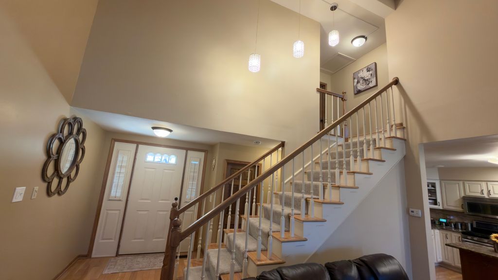 Well-built townhouse located in the highly desirable Golfview Estates. This spacious and well-maintained unit features luxurious high ceilings throughout the home, including a dramatic high-ceiling living room that enhances the open and elegant feel. The property offers a large eat-in kitchen with oak cabinetry, a family room with a gas fireplace, and a generous primary suite. Additional highlights include vaulted ceilings, an updated bathroom, and a nicely finished basement providing additional living space. Recent improvements include newer upper-level windows with updated sealants, a new sump pump, and a newer front door. Plenty of storage throughout. Enjoy a beautiful backyard setting. An exceptional value-truly an unbelievable buy.
