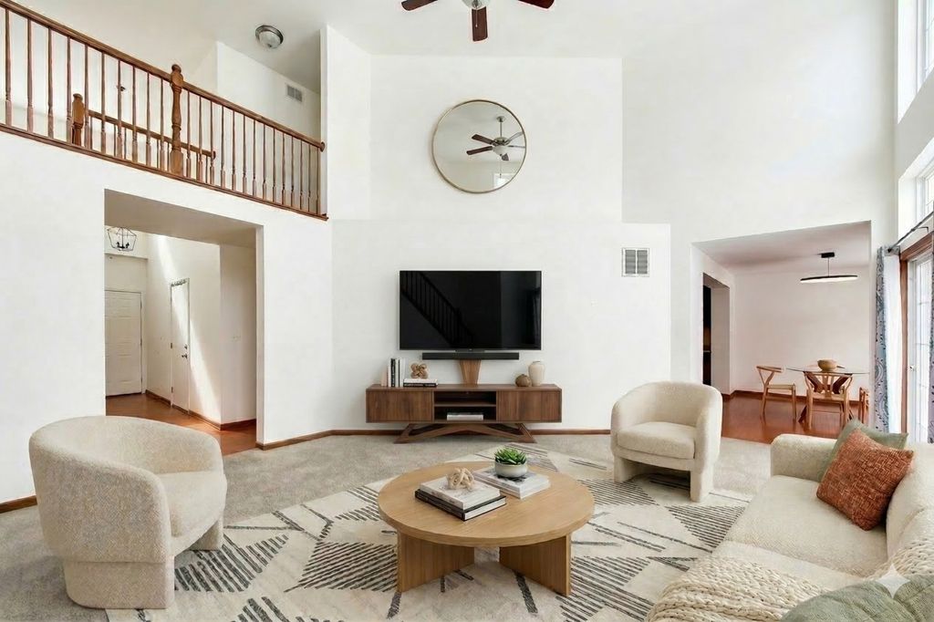 If your 2026 vision includes a welcoming, spacious and airy home- this one delivers!! Step inside and you immediately notice the vast ceiling and abundant windows showering the unit with sunlight! Impressive engineered hardwood flooring guides you through the main hallway and throughout the eat in kitchen. L-shaped cooking space boasts all stainless steel appliances and 42 inch real wood cabinets. Adjacent is the two story living room, versatile and ideal for entertaining. Upstairs you'll be delighted to find the convenient walk-in laundry room with built in cabinetry. The primary bedroom has a generous closet, full ensuite with double sinks, separate shower and a soaking tub! Just down the hall the other two bedrooms are right by the second full bathroom. Imagine the endless opportunity this spring to take advantage of Cambridge Lakes amenities and serene scenery. Enjoy the pool, workout facility, walking paths, nature trails and clubhouse! Washer & dryer (2021), Asphalt driveway (2025), Honeywell touchscreen thermostat (2026), Garbage Disposal (2026), Retractable blinds (2020), recently replaced hall and kitchen lighting fixtures. Check out the feature sheet for additional dates and features!