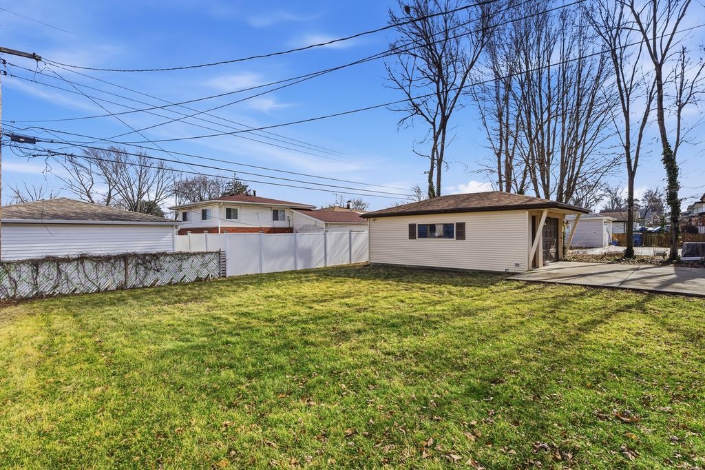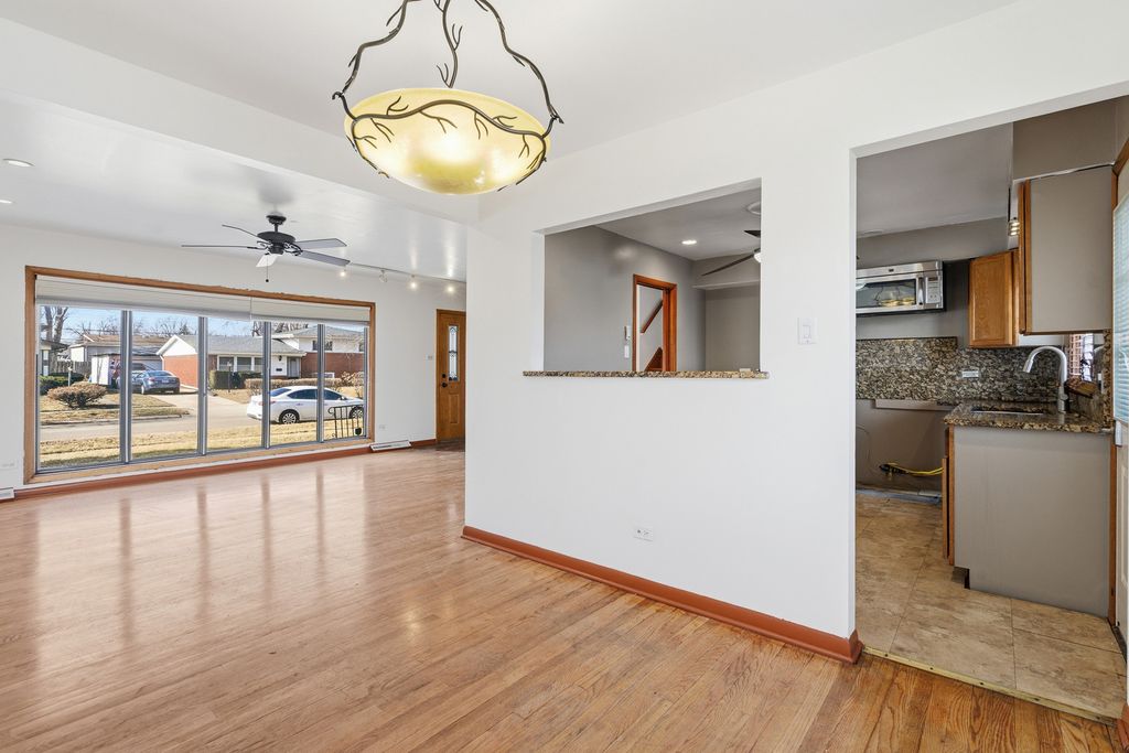 Step into this beautiful move-in-ready tri-level home showcasing fresh paint throughout and a sun-filled living room with gleaming hardwood flooring that flows seamlessly into the formal dining room. The stunning kitchen is designed to impress with oak cabinetry, a pantry closet, stainless steel oven and microwave, granite countertops, and a granite breakfast bar, plus a door leading to the concrete patio overlooking the spacious backyard-perfect for relaxing or entertaining. This inviting residence offers three bedrooms, including a primary suite with double closets, and two full baths with updated vanities, along with an expansive lower-level family room wired for surround sound and enhanced by abundant recessed lighting, ideal for gatherings. The lower level also features a full bath with a new vanity and a laundry room complete with a utility sink. Major updates include a furnace (2025), roof and gutters (2019), and a main waterline replaced 12 years ago. Already having passed the Chicago Heights inspection, this exceptional home is truly ready for its new owner.