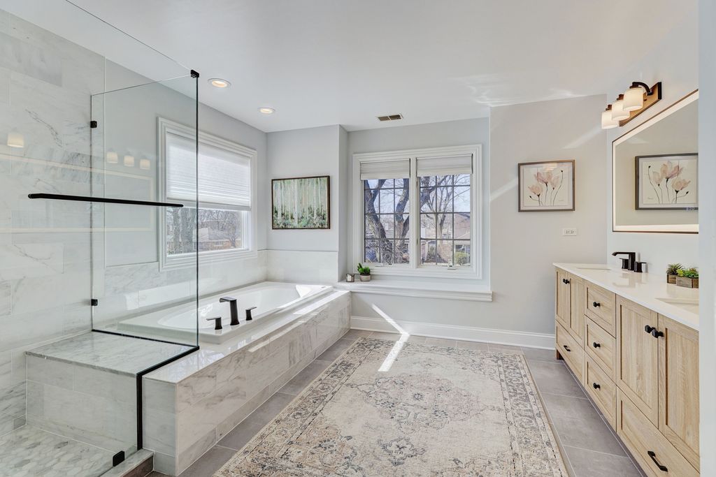 Nestled in one of Elmhurst's most desirable neighborhoods. This stately two-story brick traditional blends timeless architecture with stunning modern updates. Offering 4/5 spacious bedrooms and four and a half bathrooms, this home delivers both elegance and everyday functionality. A formal living room and dining room set the stage for refined entertaining, 1st floor bedroom/office.... while the true showpiece of the home is the brand-new oversized chef's kitchen. Designed to impress, it features premium stainless steel appliances, a Viking range, custom hood, & quarts counters. The kitchen flows seamlessly into the heart of the home and out to the backyard - creating an effortless indoor-outdoor lifestyle. Step outside to your newly expanded brick patio, ideal for summer evenings, and entertaining on a grand scale. Upstairs, all four bedrooms are generously sized. The primary suite is a true retreat, highlighted by a beautifully renovated, spa-inspired bathroom designed with luxury and comfort in mind. The finished basement offers exceptional additional living space, complete with family room, dedicated workout area, creative art station, and abundant storage - flexibility for every stage of life. A two-car attached garage adds everyday convenience to this thoughtfully updated and impeccably maintained home. This is a classic Elmhurst charm - reimagined with today's finishes.