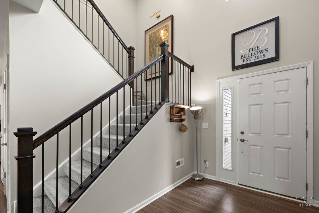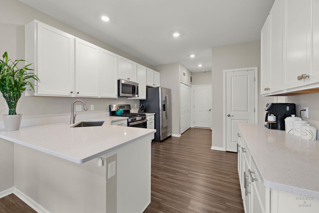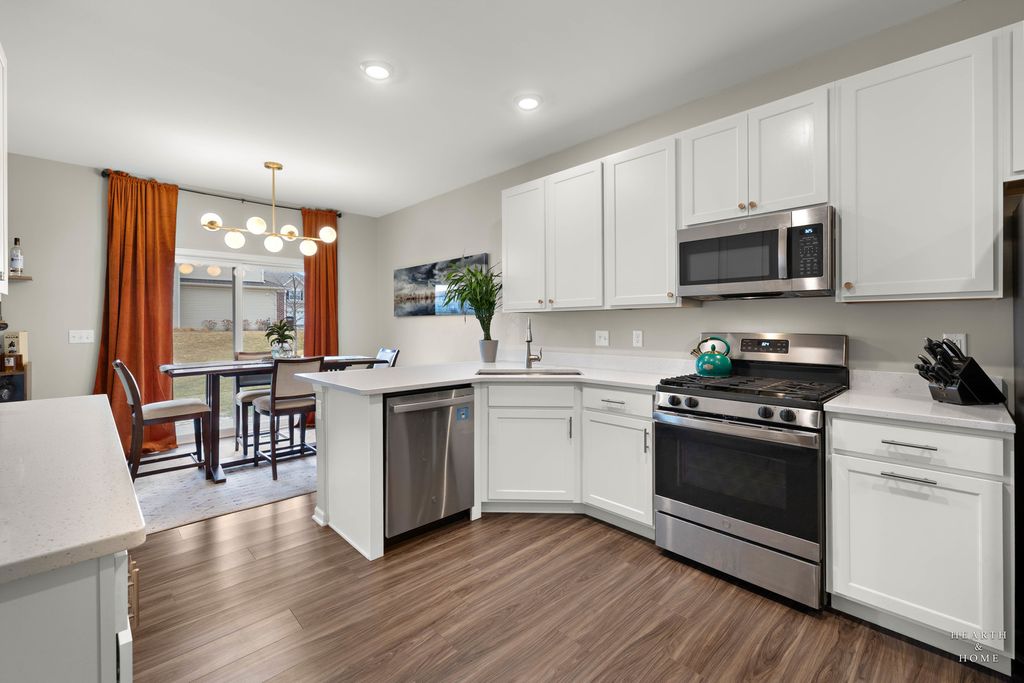 Welcome to the Meadows of West Bay! This highly sought-after COURTNEY model townhome is move-in ready and waiting for its next owners. Step inside and immediately notice the luxury vinyl plank flooring, soaring ceilings, and abundant natural light that fill the open-concept main level. The spacious living room flows effortlessly into the dining area, featuring patio access and upgraded lighting - an ideal setup for both entertaining and everyday living. The gourmet kitchen is a true centerpiece, offering stainless steel appliances, upgraded quartz countertops, and generous prep and serving space for hosting with ease. The main level is thoughtfully completed with a pantry, powder room, coat closet, and convenient garage access. Upstairs, the plush-carpeted staircase with upgraded handrails leads to a bright second-floor landing. Here you'll find a full laundry room with utility sink, shelving, and hanging rail, along with two spacious secondary bedrooms featuring large closets and a full hall bath. The oversized primary suite serves as a private retreat, complete with a spa-inspired en suite bathroom and expansive dual walk-in closets. Enjoy maintenance-free living with professional landscaping year-round. Take advantage of the private park just steps away to practice your pickleball game, or explore the scenic walking trails that wind through the community's beautiful natural wetlands. Finally, enjoy your lake rights with a private, gated boat launch for the residents of Meadows of West Bay! Schedule your private tour of 8520 Stillwater and fall in love today!