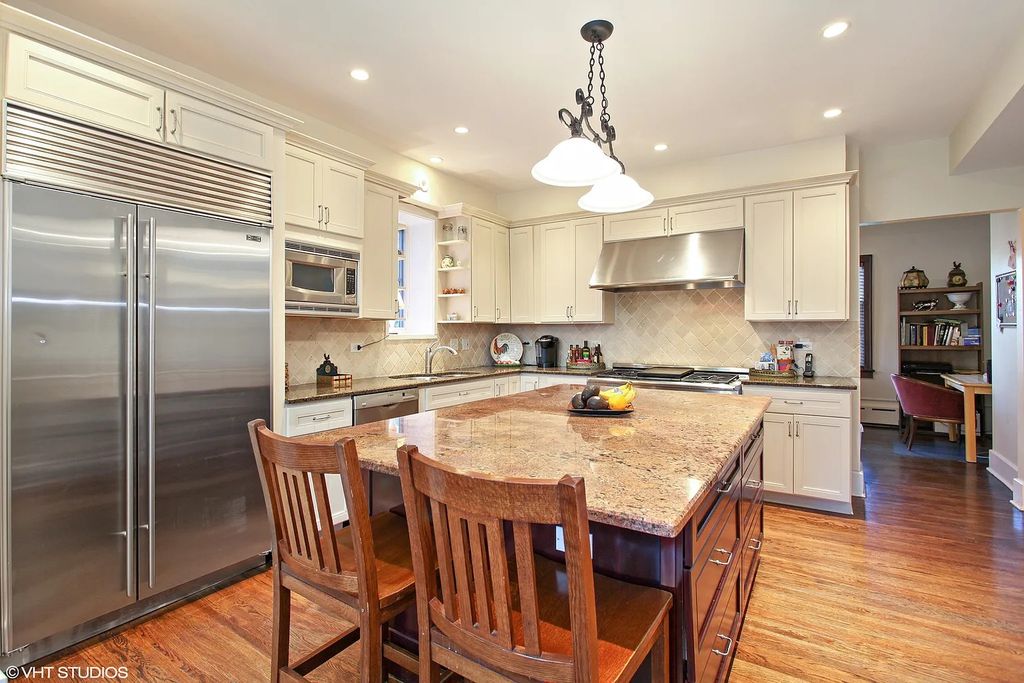 Walk to town, the train, schools, and the lake from this remodeled Tudor on a quiet cul-de-sac in East Highland Park. The main level includes a formal living room, separate dining room, and a family room with fireplace, plus a private office. The kitchen is equipped with high-end appliances, an island, and a dedicated eating area. A bright four-season room with heated floors completes the first floor.mUpstairs, the primary suite features a bathroom with separate shower, whirlpool tub, and heated floors. Four additional bedrooms offer good space and flexibility.The finished lower level provides a recreation room. Attached two-car garage.A well-located, beautiful home with a functional flowing layout and luxurious updates throughout. Showings start 4/15