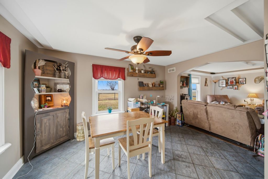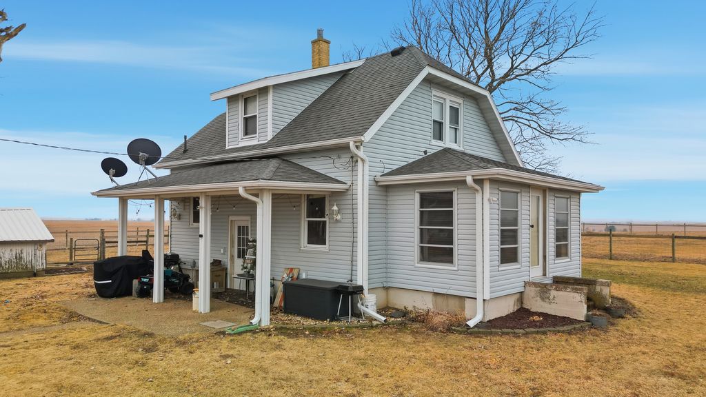 Here's your chance to own a 1.5 acre farmette with an adorable bungalow & multiple buildings to house all your animals & equipment. The main level has tile floor in the kitchen & dining room with an original built-in hutch. The cozy living room has hardwood floors & a tray ceiling with recessed lighting. The front enclosed porch has potential for many options or just enjoy hanging out during the warmer seasons. The upstairs has 2 bedrooms & full bath with double sinks. Outside has plenty of space for a large garden, entertaining & play area. Check out this list of updates; kitchen cupboards/counter(2017), stainless steel appliances(2015), upstairs carpet(2020), Water softener(2020), Furnace/AC/Water heater (2011), Windows (2012), House roof(2012) & Barn roof(2013). All ready for you to move in, bring your horses, goats, chickens or all favorite animals & start country living at its best!