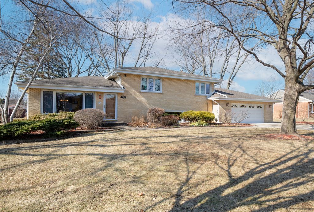 MULTIPLE OFFERS RECEIVED. HIGHEST AND BEST DUE BY NOON MONDAY 2-23-2026. VERY RARELY AVAILABLE! Branigar Estates Meticulously maintained 4 bedroom split level w/sub-basement on an incredible half acre lot in unincorporated Elk Grove Village! This home has been lovingly cared for and upgraded over the years to reflect pride of ownership; The main level features a sun-filled living room with custom plaster moldings and a free-standing electric fireplace, dining room, newly carpeted bedroom or den/office off the large maple cabinet kitchen w/granite countertops, stainless steel appliances, custom lighting and a spacious separate eating area w/direct access to the brick paver patio with a pond overlooking a HUGE BACKYARD!! 2nd level includes 3 good sized bedrooms w/ample closet space & a full, updated bathroom; The lower level extends the living space to include a large family room w/electric free-standing fireplace, built-in cabinets and a custom entertainment cabinet on rollers & wall-mounted tv plus the 2nd full bathroom! It doesn't stop here...there is a finished sub-basement which offers so many options...use as a 2nd family room, office, craft room, etc. The attached garage is amazing and was expanded to include a large workroom/storage area addition creating flexible workspace - and BOTH the garage and workroom floors are heated! Many improvements include: Beautiful hardwood floors in the LR, DR and 3 bedrooms; Solid core 6 panel interior doors; 3 sep. heat systems; HWH approx 5 yrs old; Patio door approx 5 yrs old; Dishwasher replaced 2/2026; whole house intercom w/outdoor speakers; roof on the house and garage replaced in 2015; brick paver patio & walkways; Sump pump w/battery back-up; Security system; Underground sprinklers in front and backyard; Hard-wired patio lights; Generac generator; 1-Year American Home Shield Warranty included! Great opportunity!! Near multiple parks including Rainbow Falls Water Park, Busse Woods, Ascension Alexian Brothers Hospital, and easy access to major expressways 290/53/355 and Metra! Don't miss this one! It's like living in the country, yet close to everything!