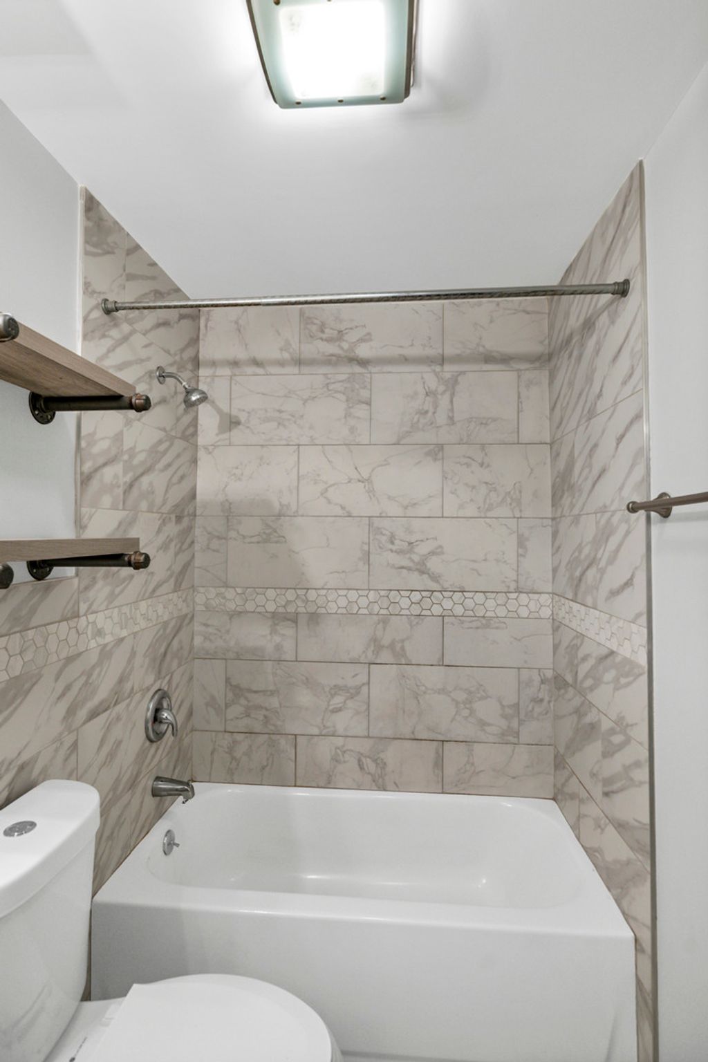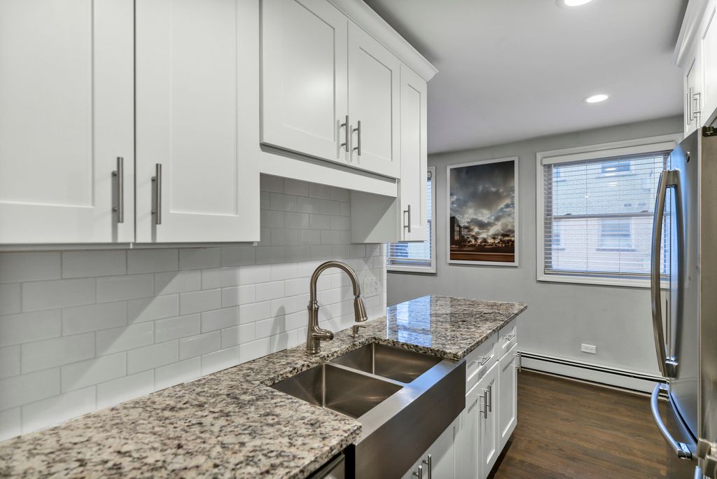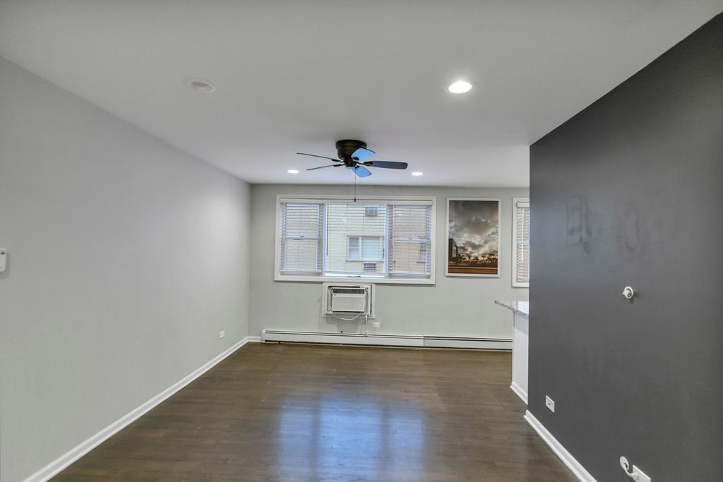 Welcome home to this beautifully maintained 1-bedroom, 1-bath condo offering comfort, style, and everyday convenience. A welcoming lobby sets the tone as you enter the building, leading to a thoughtfully designed residence with hardwood floors and recessed lighting throughout the main living areas. The spacious living room provides the perfect backdrop for relaxing or entertaining, flowing seamlessly into a functional galley kitchen complete with a breakfast bar, and ample cabinet and counter space. The primary bedroom is both comfortable and practical, featuring built-in shelving and generous closet space for easy organization. The full bath showcases elegant tile details and includes a tub with shower for timeless appeal. Additional highlights include one garage parking space and convenient common-area coin laundry. Perfectly positioned near Elm Middle School, Dominican University, and Concordia University Chicago, this home offers close proximity to dining, groceries, shopping, and outdoor recreation-bringing lifestyle and location together in one exceptional opportunity.