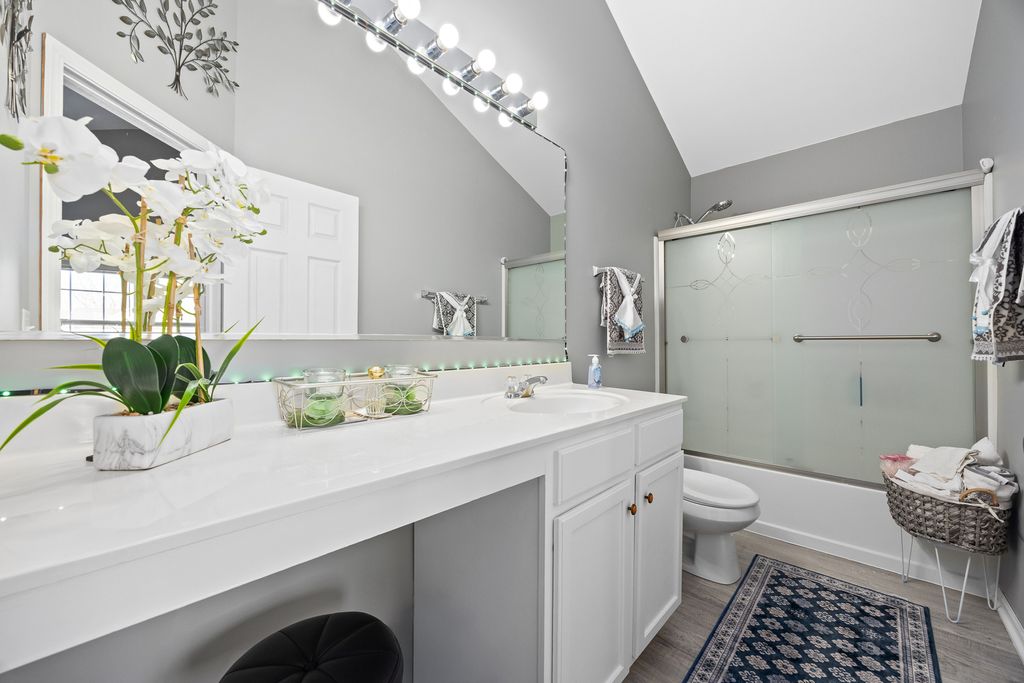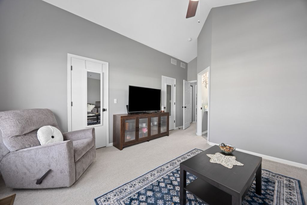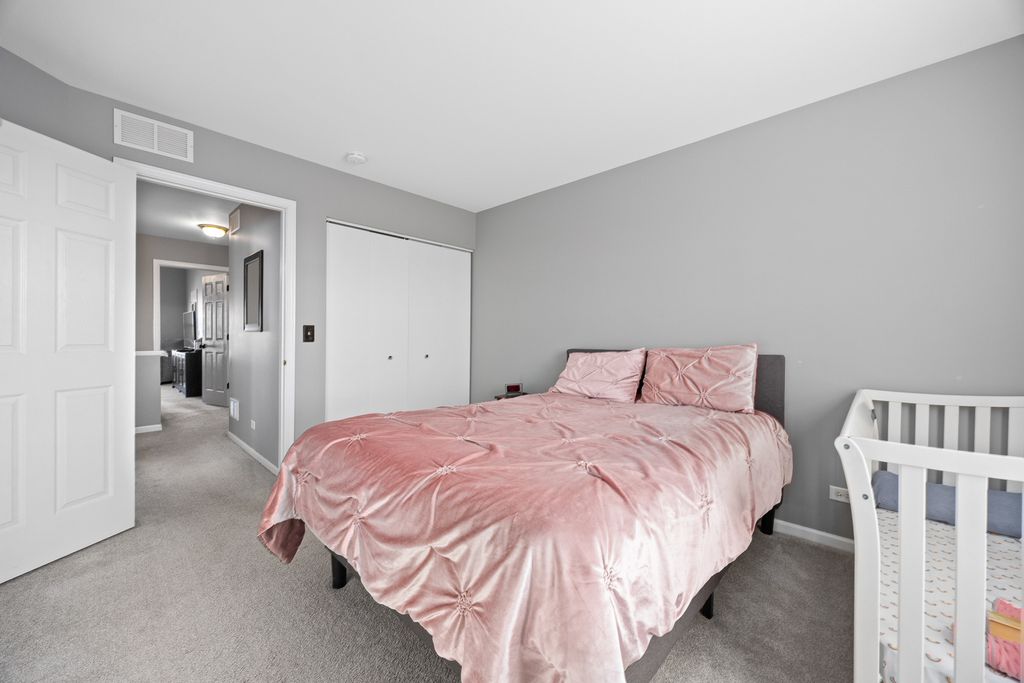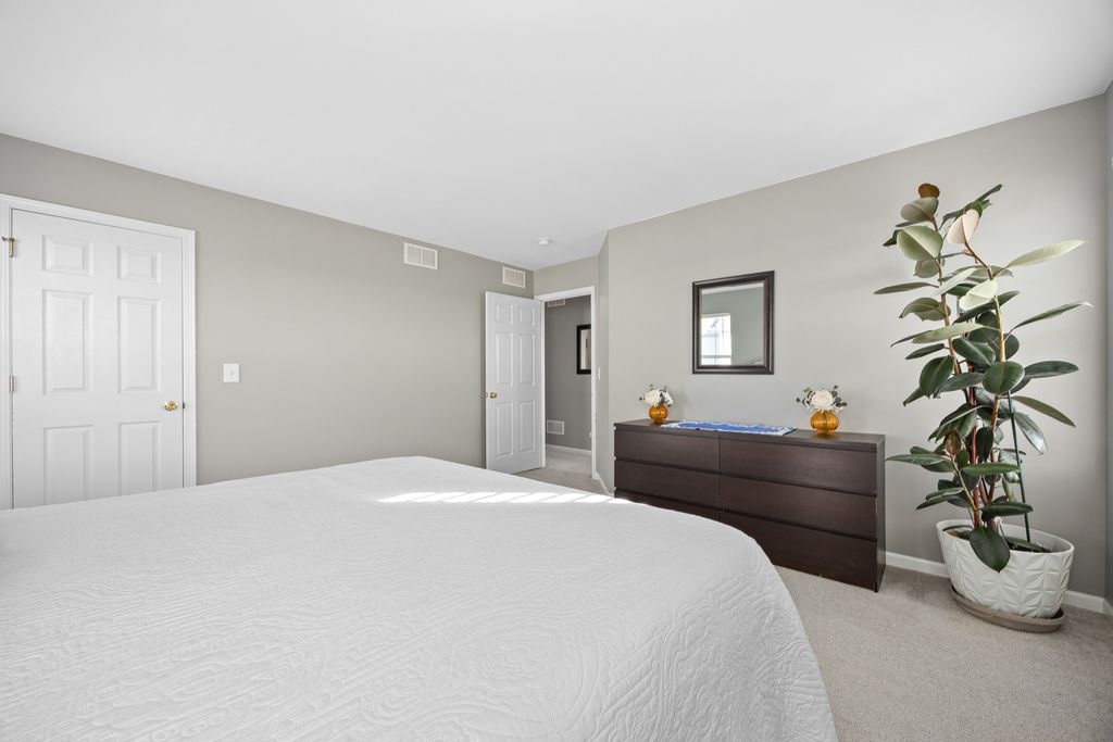 Welcome home to this beautifully maintained end-unit townhome offering space, style, and privacy! Upon entering, you're greeted by a charming front porch and a private side entrance, creating a warm welcome. Inside, you'll find a living room that is beaming with natural light and a beautifully updated kitchen that features white cabinets, granite countertops, and a coordinating backsplash. A nice-sized dining area and half bath finish off the first floor. Upstairs, you'll find three very spacious bedrooms, each offering ample closet space and natural light. The primary suite provides a relaxing retreat with its own private bathroom, complete with an oversized vanity with makeup table and also features two walk-in closets. The second bedroom also has a walk-in closet and all three bedrooms can easily accommodate king size beds. As an end unit, this home provides extra windows and enhanced privacy. It also backs to open area offering peaceful views. Located in a clubhouse community, residents enjoy fantastic amenities including a pool, an exercise room, tennis courts, and basketball courts - truly something for everyone right outside your door. The roof was replaced in 2025 and the water heater was replaced about 4 years ago. Add in a 2 car attached garage, plenty of guest parking, short walking distance to parks, quick access to Route 59 and the expressway and you'll see why this gem is a must see!