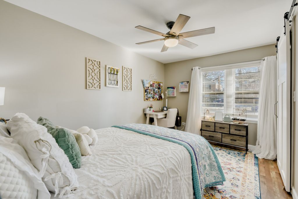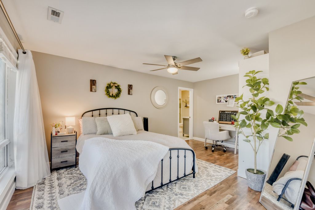 Welcome to this stunningly rehabbed 2 bed, 2 bath home nestled in the charming River Forest Manor Neighborhood. As you step inside, you'll see the cozy, open concept living room with wood burning fireplace. This flows into the beautifully updated kitchen with white cabinetry, quartz countertops, island with seating and stainless steel appliances. The home offers two generously sized bedrooms and bathrooms. The primary suite provides an abundance of natural light along with an en-suite bathroom. Both bathrooms have been thoughtfully designed with modern fixtures, double sinks and laundry. Convenient one car attached garage. Outside, the private backyard is perfect for relaxing with a covered patio and fire pit. Rehabbed in 2023 with new roof, gutters, siding, HVAC, water heater, pipes, 200 amp electric. A must see gem in this sought after area of Elmwood Park!