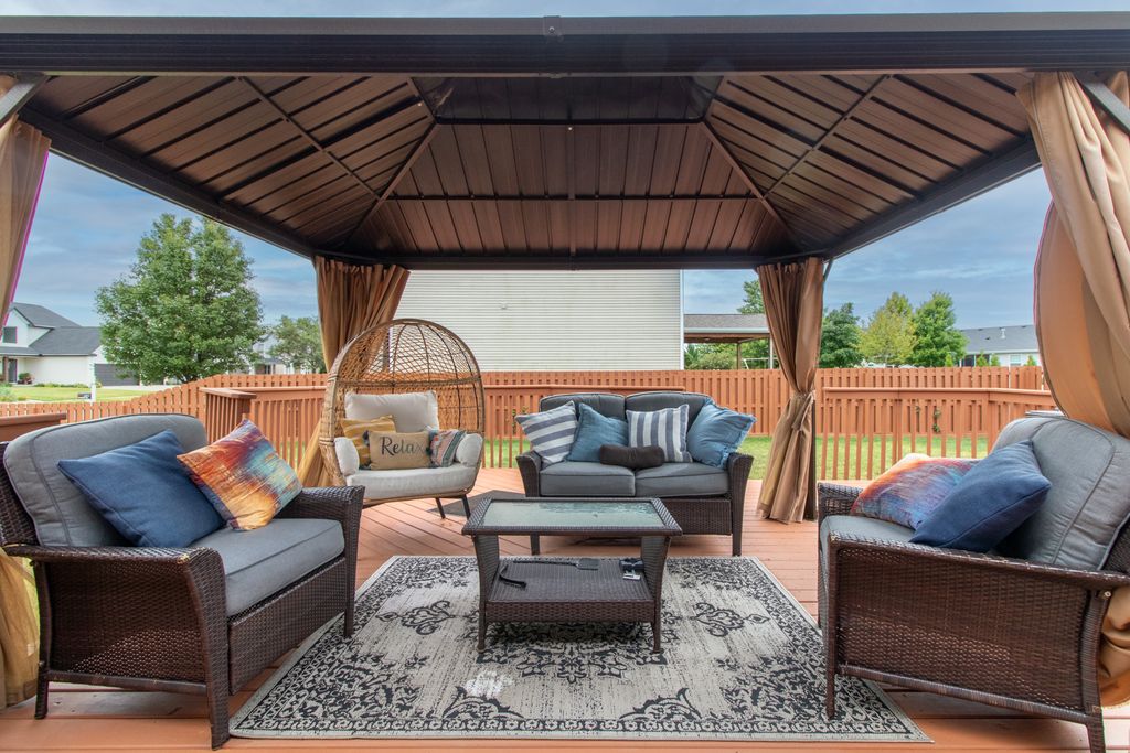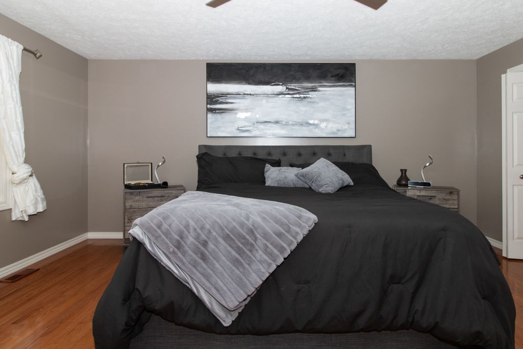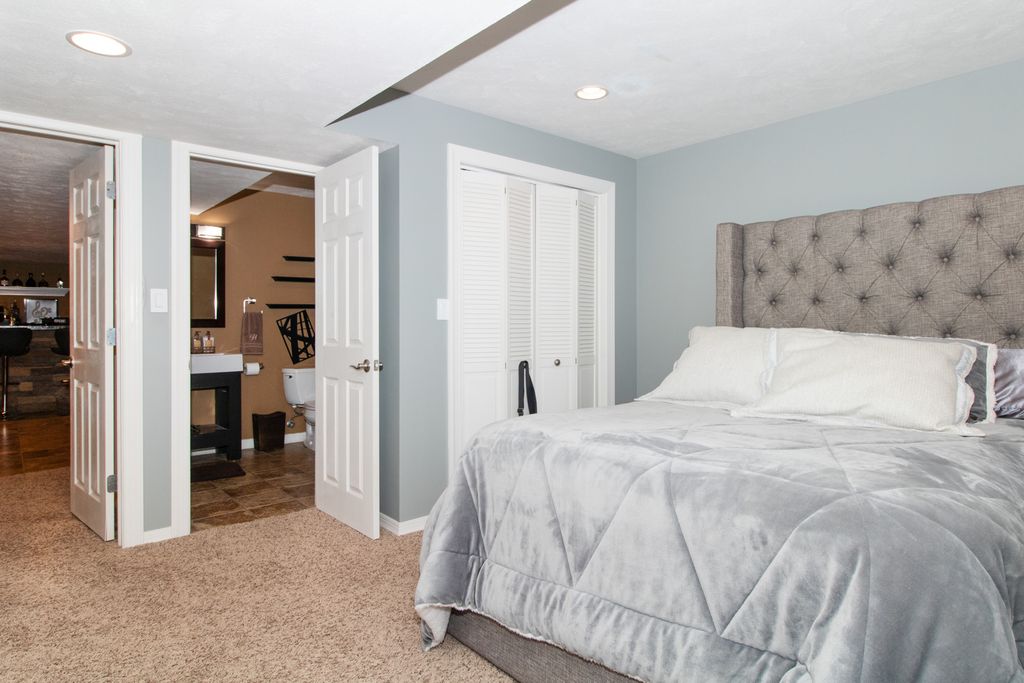 Welcome home to this beautiful ranch home on a corner lot. This home features four bedrooms, three and a half bathrooms with an open floor plan. The first floor features hardwood floors in foyer, hall and kitchen. Custom blinds on all windows on first floor and lower level. Lower level features a wet bar with stone columns, concrete top, theater area with surround sound. Outdoor features a nice fenced yard with 2 gates. Great landscaping all around the home to give it wonderful curb appeal! Updates include new roof June 2025, new fireplace surround and painted garage door. Must see property!