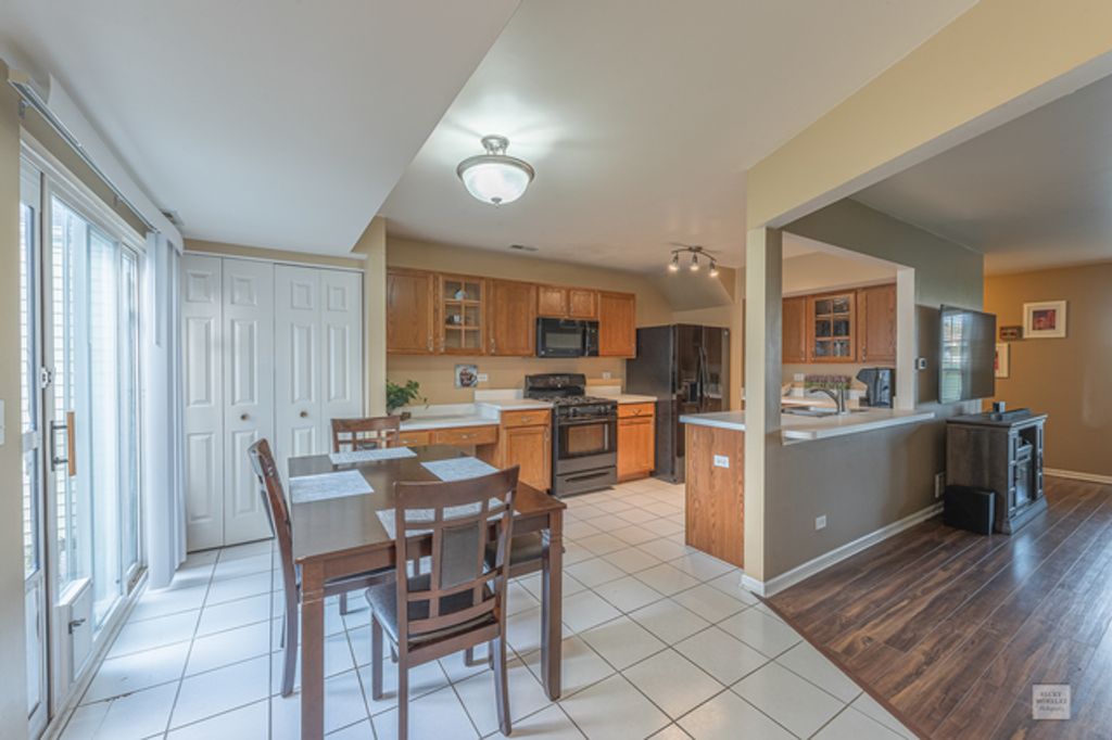 Bright & beautiful 2 story home is ready for new owners. Featuring a spacious bayed living room with wood laminate flooring opening to dining area & large kitchen. Kitchen has major appliances, pantry closet as well as lots of cabinet & counter space for all of your cooking & baking needs. 2 generous sized bedrooms, loft (could be 3rd bedroom) and full bathroom on the 2nd level. Master bedroom has walk in closet, bayed window and vaulted ceiling. Relax on the front porch or on your private deck in the fenced back yard while sipping your morning coffee. Attached 2 car garage provides plenty of storage. Enjoy the perks of maintenance free condo-style living in a single family home as someone else cuts the grass & shovels the snow! Water & sewer are also included in the monthly assessments. Prime location within walking distance to the Elementary school, onsite parks & ponds. Just Minutes to I88, Metra Train Station, shopping & dining! Welcome Home!