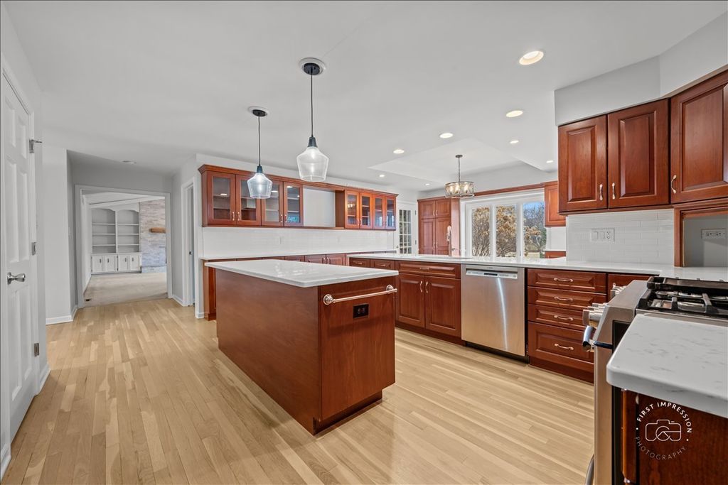 Beautifull Knock Knolls home that has been updated from top to bottom! The kitchen is amazing in its size, cabinet storage, auartz counter space, and newer SS appliances. Lighter refinished hardwood floors run from the foyer through the kitchen. Amazing natural light through the thoughtully placed windows. The primary/master bath is stunning! Walk-in closets in 3 of the bedrooms. The finished basement adds even more versatilty. Among the numerous updates : 2019 New roof and gutters. 2022 all bathrooms redone. 2025 cut stone fireplace facade update. 2019 Newer SS appliances. 2025 New quartz countertops and new backsplash. 2023 New upstairs carpet. 2022 New furnace and air conditioner & the water heater new in 2024. The entire interior was repainted in 2025 and door hardware and trim refreshed. Also the deck was stained, garage floor refinished (huge 2.5 car + in size) landscape freshened up last year. Also note, sprinkler system & radon mitigation system. The knock Knoll Park and Nature Center is a few blocks away complete with many activities, trails and even a frisbee golf course! Award-winning 203 schools- with Springdale a block away and includes Neuqua HS.
