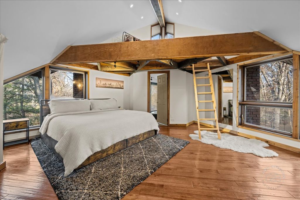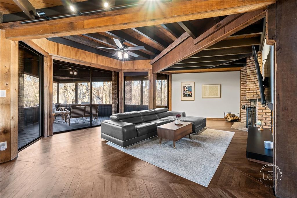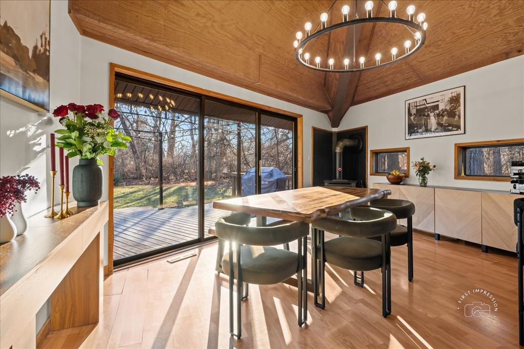 Don't miss this ONE-OF-A-KIND CUSTOM HOME! Nestled between 2 golf courses and a forest preserve and located at the end of a PRIVATE DRIVE, this 1.6 acre property highlights TRANQUILITY and PRIVACY at their finest. Mature trees, a neighborhood pond and tons of wildlife ~ you'll find GORGEOUS VIEWS of nature out every window! This former architect's home features an open concept, windows galore, soaring ceilings and hardwood floors throughout most of the living spaces. The eat-in kitchen over looks the serene backyard perfect for entertaining! Off the kitchen is an office nook, laundry room and convenient powder room. The super-spacious family room is sure to impress, with its wall of windows, which open to the massive outdoor screen porch ... Just imagine sipping your morning coffee here! Upstairs, you'll find the primary bedroom, with his-and hers closets, an en suite bath and an unexpected bonus loft space (think home office, yoga or reading retreat!) Two additional bedrooms share another newly updated full bath. The partially finished basement houses mechanicals (note the dual zone heating and cooling) and provides good storage space. Additional space for all your toys can be found in the shed and OVERSIZED GARAGE, with attic! Close to EVERYTHING ~ stores, restaurants, entertainment, Sonny Acres Farm, commuter train and expressways! HURRY to see this PHENOMENAL HOME!! Recent updates include - new roof, new furnaces and A/C units, new humidifiers, newly updated main bath, new washer/dryer, landscaping - tree removal and trimming and stone retaining wall.