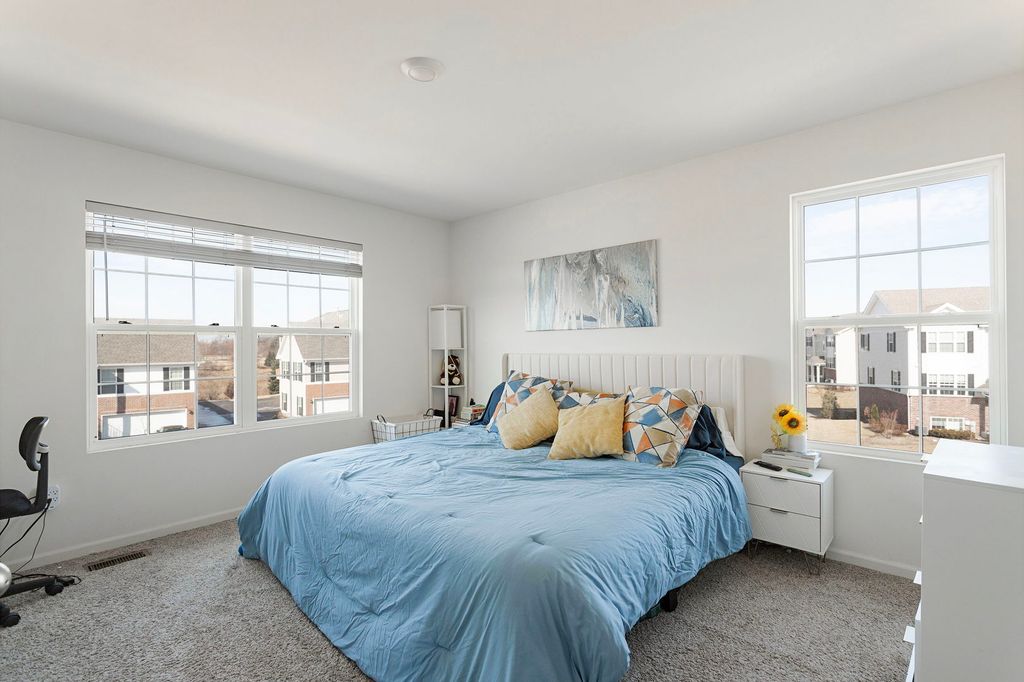 **Move-In Ready End Unit Garfield Townhome in Yorkville!** This spacious 1,758 sq. ft. end-unit townhome offers 3 bedrooms, 2.5 baths, a finished lower-level bonus room, and a 2-car garage. The bright, open-concept main floor features a designer kitchen with upgraded cabinetry, a large island with seating, and stainless-steel appliances. The kitchen flows seamlessly into the dining and great rooms-perfect for everyday living and entertaining. Upstairs, the generous primary suite includes a private bath, walk-in closet, and ceiling fan rough-in. The conveniently located second floor laundry adds everyday ease. The finished lower level provides an excellent flex space for a home office, family room, or play area. This home includes **America's Smart HomeSM Technology**, allowing you to control your home from anywhere. This townhome has a professionally landscaped front yard, plus lawn care and snow removal for low-maintenance living.