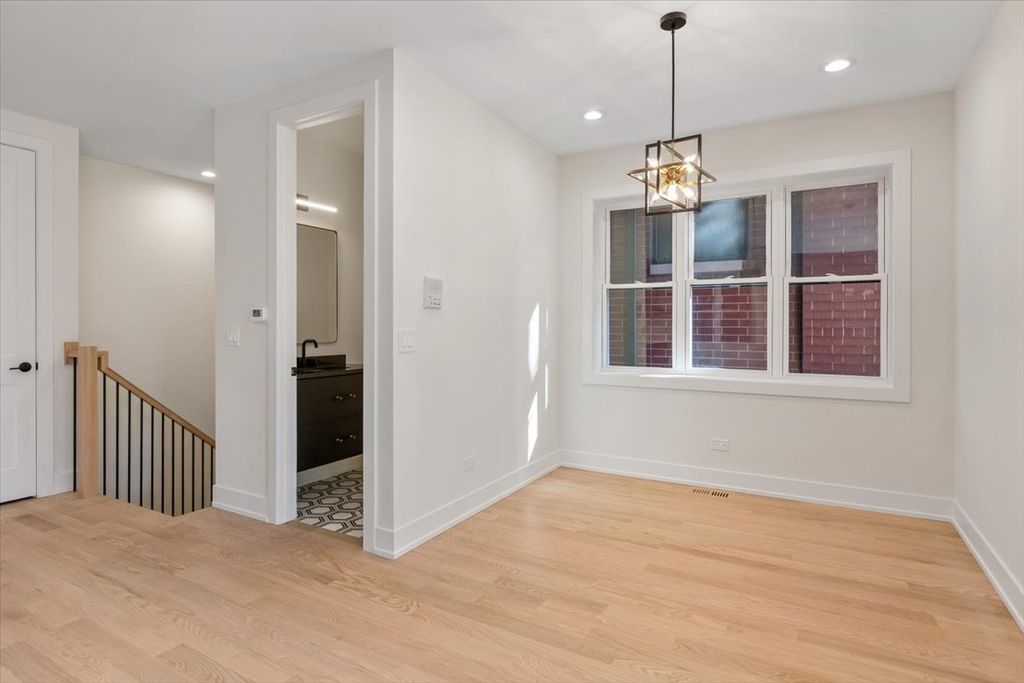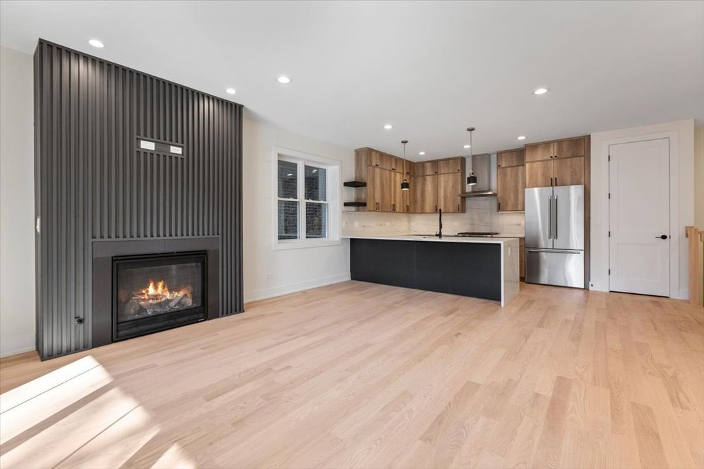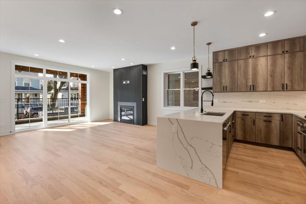 Spectacular extra-wide new construction in the heart of Andersonville. Set on a 35-foot-wide lot, this spectacular south-facing duplex-down offers a serene living experience on one of Andersonville's quietest streets while still being less than a three-minute walk from all of the shops, restaurants and vibrant energy of Clark & Foster. With your own private side entrance, enter this home to a dramatic, double-high atrium providing stair access to both the upper and lower levels. As you ascend to the main living space the width of this unit will blow your mind. Finally, a condo with a generously sized kitchen, a generously sized living room and a true, defined dining room! Not to mention a south-facing deck finished with 24" x 24" porcelain tile overlooking charming, tree-lined Winona. Features of this home include: 4-inch American white Oak hardwood floors, 8-foot solid core two-panel inset doors and 9-foot ceilings and custom closets throughout. Kitchens include a full Thermador appliance package, 1.25-inch quartz counters with waterfall-edge island, custom cabinets with soft-close hinges and drawers. A gas, ventless fireplace with beautiful surround is the focal point of the family room which also has a powder room and large coat closet. The lower level has 3 nicely sized bedrooms, custom closets throughout, a hall bath with hexagonal marble stone flooring, marble tub and shower surround and floating vanity with 1.25-inch quartz countertop. The primary bedroom captures tremendous southern light and primary bath features a floating vanity, double sinks, 12" x 24" stone floors, enormous walk-in shower with rain shower, hand-held, soap niche and bench. The unit also comes with a garage-top deck finished with 24" x 24" porcelain tiles. Garage parking included. Available for immediate delivery. Photos coming 2/19.