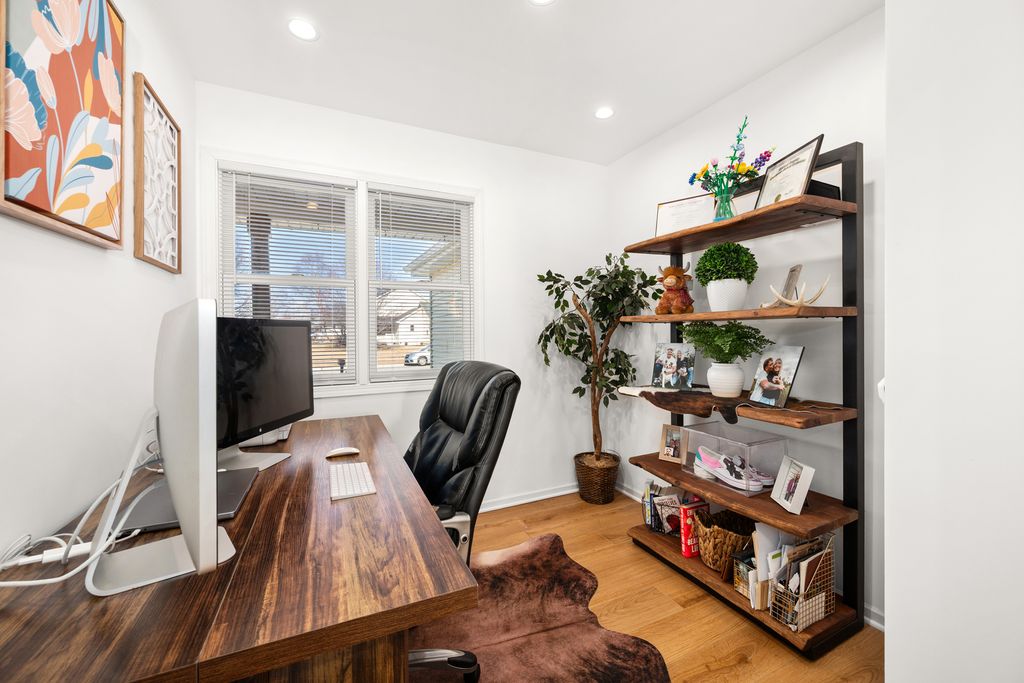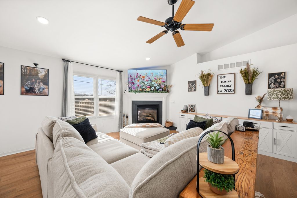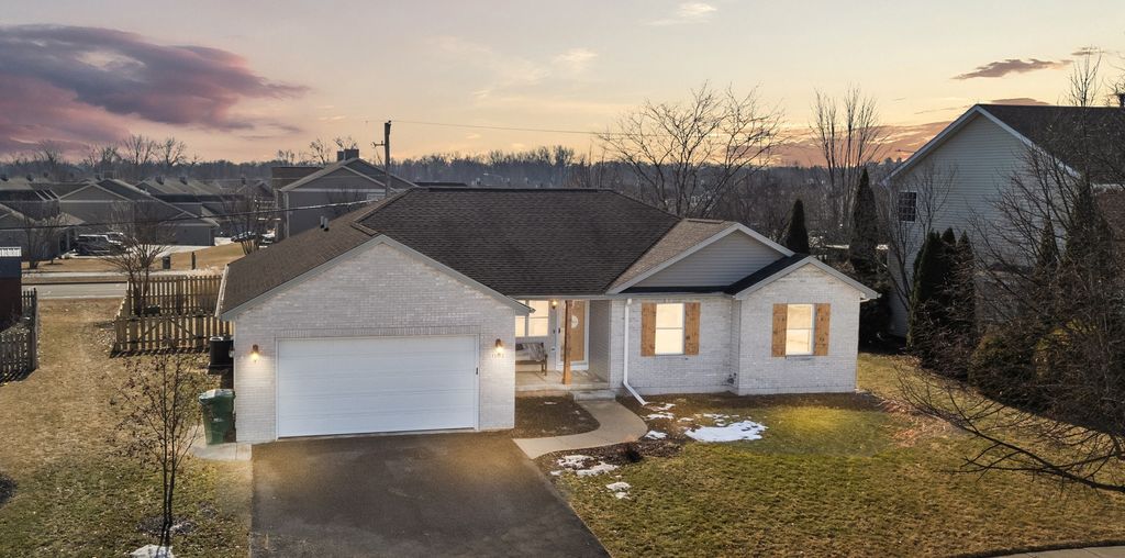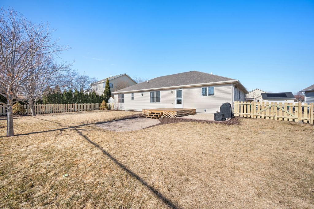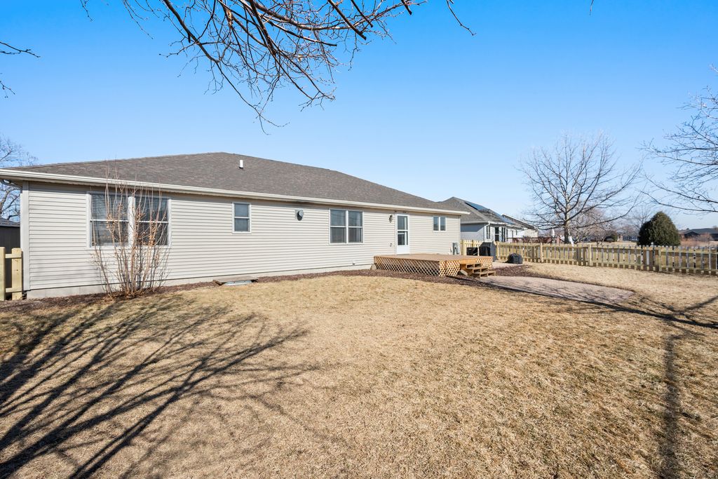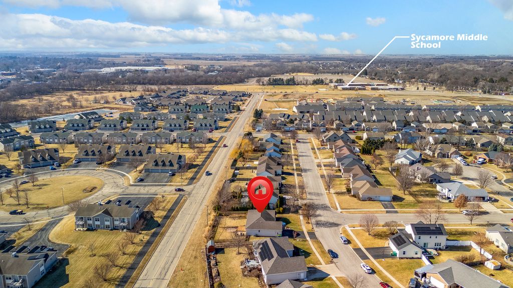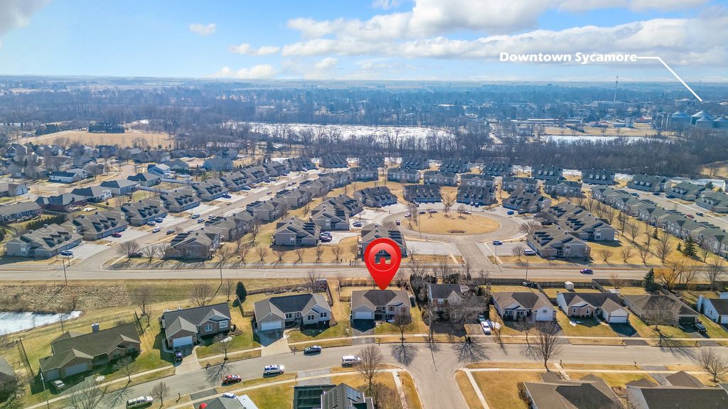Stunning ranch property inside and out, located in the desirable Townsend Woods neighborhood of Sycamore, Illinois. From the moment you arrive, the attractive curb appeal sets the tone for a home that has been thoughtfully planned and beautifully maintained. Warm finishes, intentional details, and a highly functional layout make this residence well suited for both daily comfort and effortless hosting. At the center of the home is an open-concept floorplan connecting the living, dining, and kitchen areas, filled with natural light and enhanced by a vaulted ceiling and cozy gas fireplace that creates an inviting atmosphere. The kitchen is a true highlight, offering abundant cabinetry, a pantry with convenient roll-out drawers, tile backsplash, stainless farmhouse sink, and a generous island providing ample preparation. Whether entertaining guests or enjoying quiet evenings, this design encourages connection and flow. The flexible layout includes three comfortable bedrooms, two full bathrooms, and two half baths-including one in the basement-along with a private office or versatile flex room accented by French doors, ideal for remote work, hobbies, or additional living needs. The primary suite serves as a peaceful retreat featuring a stylish accent wall, spacious walk-in closet, and charming sliding barn doors. The ensuite bath offers a walk-in shower, generous counter space, and wainscot detail, blending practicality with refined style. Everyday convenience is elevated by a spacious mudroom and laundry area with abundant storage, shelving, and a folding counter to help keep everything organized. The partially finished basement expands usable square footage with additional recreation or media space while still providing a substantial storage area. Outdoor enjoyment shines with a deck and paver patio perfect for relaxing or entertaining, a fenced yard offering privacy, and a convenient shed for outdoor equipment. A heated two-car garage adds year-round comfort and functionality. Numerous recent improvements offer peace of mind, including furnace (2023), A/C (2025), water heater (2026), fence (2025), washer and dryer (2025), dishwasher (2023), and stove (2023). Meticulously cared for and truly move-in ready, this exceptional ranch blends quality, comfort, and timeless appeal in a location you'll be proud to call home.