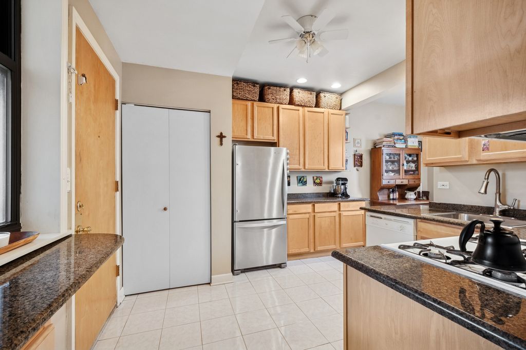 This condo feels like home! A perfect combination of architectural details and renovation. Located by Ridgeville park and an easy walk to Chicago and Main Street shopping and train lines. Cozy living room with gas fireplace opens to sunroom. Two nice size bedrooms and renovated hall bath. In unit laundry and loads of closet space. Fully equipped kitchen with solid wood cabinetry and granite counters opens to the sun-filled dining area. Charming shared patio and garden space .Storage and bike room down back stairs in the basement. Easy street parking.
