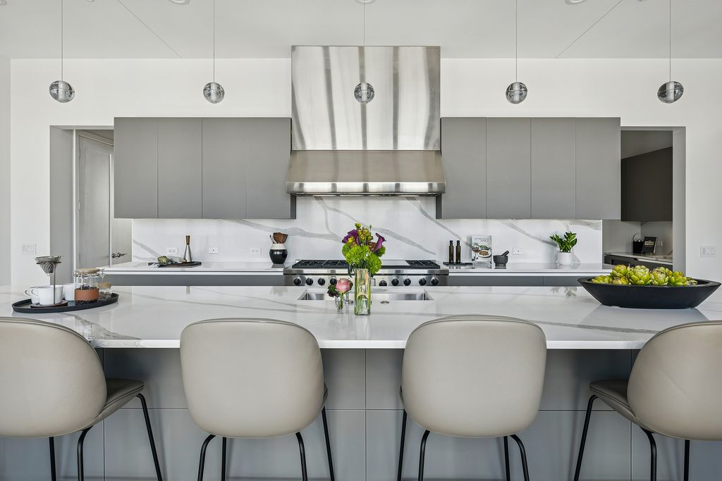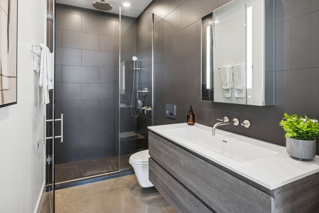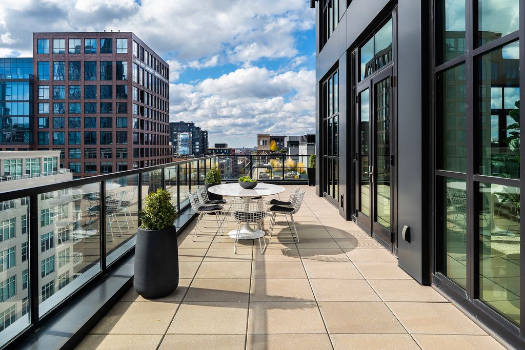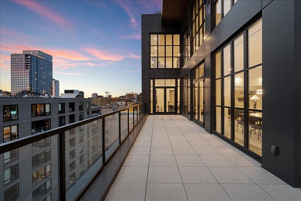 Discover the best of the West Loop in this top-floor duplex penthouse at 900 West Washington, an exclusive LEED Gold-certified boutique building of just 22 homes. Sweeping skyline views surround a wraparound terrace, while the elevator opens directly into a modern, sun-filled interior with radiant-heated concrete floors. With new designer lighting, this residence offers a warm yet contemporary feel throughout. Floor-to-ceiling, sound-insulated windows maximize natural light, and the chef's kitchen features Scavolini cabinetry paired with Sub-Zero/Wolf appliances. All bedrooms have en suite bathrooms, including a serene primary retreat with a spa-caliber bath and custom walk-in closet. Thoughtfully designed for healthier, more sustainable living it features MERV-13 hospital-grade air filtration, a green roof, and energy-saving systems that keep the home comfortable year-round. Right outside the front door are the West Loop and Fulton Market's award-winning dining and shopping, Soho House and Mary Bartelme Park. Two garage parking spaces included.
