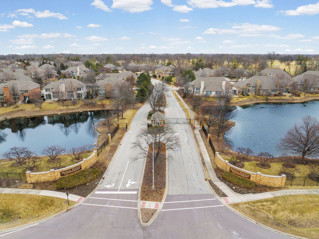Sophisticated Luxury Living in Prestigious Royal Ridge. Welcome to Northbrook's premier 24-hour gated, maintenance-free community. Designed for effortless elegance and refined comfort, this meticulously maintained residence offers the perfect blend of grandeur and livability. A dramatic two-story foyer with soaring 18-foot ceilings sets the tone for the home's airy, sun-filled interiors. The spectacular great room features a fireplace, wet bar and an impressive wall of floor-to-ceiling south-facing windows with sliders that open to a private brick patio overlooking a tranquil pond-an ideal setting for morning coffee or evening entertaining.The expansive main-floor primary suite is a true retreat, complete with a spa-inspired marble bath featuring a soaking tub, separate shower, and a generous walk-in closet with custom built-ins. The thoughtfully designed eat-in kitchen offers granite countertops, custom cabinetry, a breakfast bar, and seamless flow into the formal dining area-perfect for intimate dinners or hosting family gatherings. A butler's pantry, dedicated work station, and spacious laundry/mudroom add both function and sophistication to the main level. Upstairs, guests will enjoy privacy with a large ensuite bedroom, while an additional bedroom or office with custom built-ins provides ideal flexibility for visiting family, hobbies, or remote work. Additional highlights include 2 furnaces, 2 A/C units, and 2 hot water heaters for optimal efficiency. Expansive unfinished basement ready to be customized or used for exceptional storage. Enjoy the pleasures of maintenance-free living with 24 hour gated security, snow removal/lawn care, onsite manager and handyman, club house, exercise facility and outdoor swimming pool. Ideally located near premium shopping and dining, including Whole Foods, Starbucks, Target, and more, this home offers both serenity and convenience in one of Northbrook's most sought-after communities. Experience the ease of luxury living-where space, privacy, and peace of mind come together beautifully.