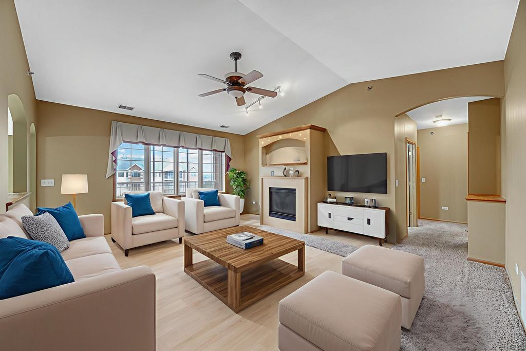 A perfect condo waiting for you to move right in. Two bedroom, 2 bath unit has a large living room with fireplace and opens to the large dining room, nice sized kitchen with tons of cabinets and breakfast room with door to balcony. Master suite has its own bathroom with linen closet and large walk-in closet. Really clean and well maintained. Parking in attached garage and has a storage unit. Perfectly located near shopping, restaurants, expressways and located in the award-winning Lincoln Way School district. Call today for your private showing.