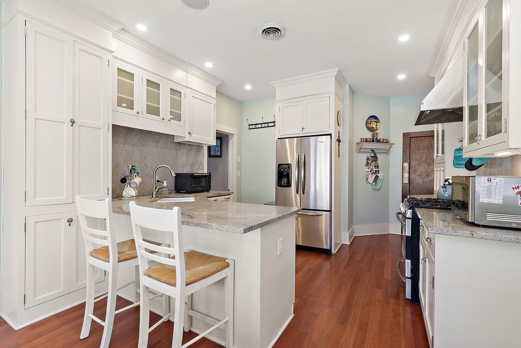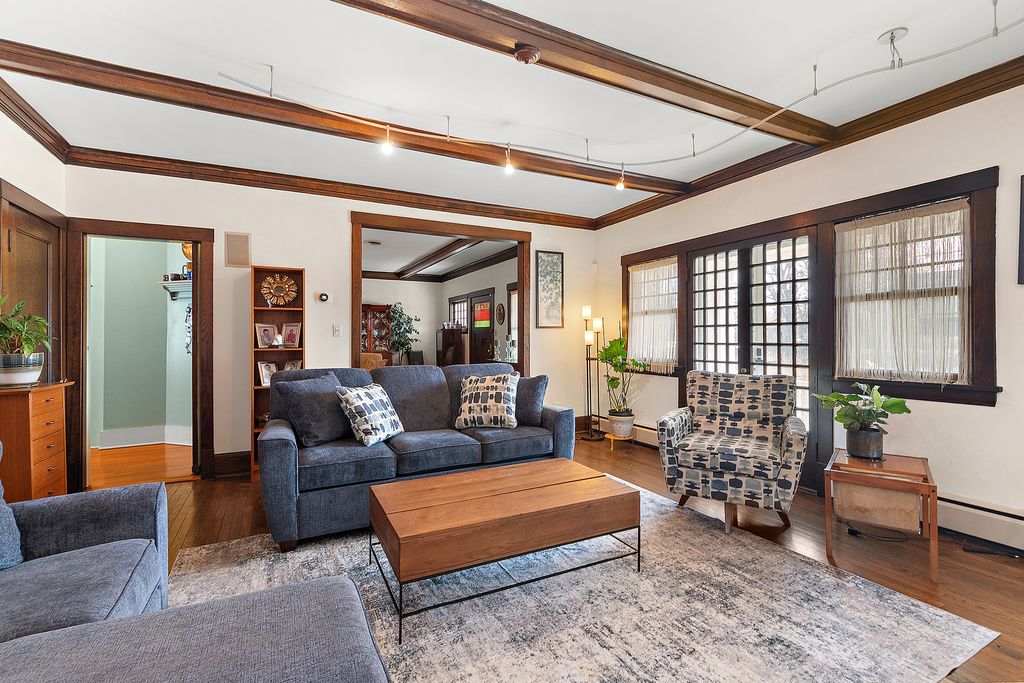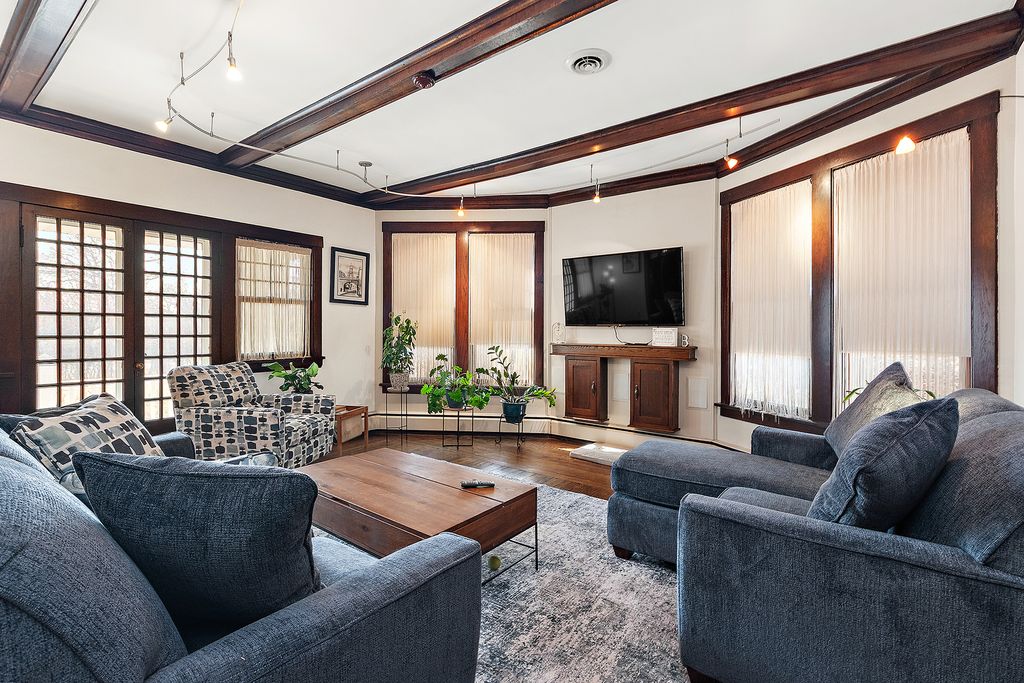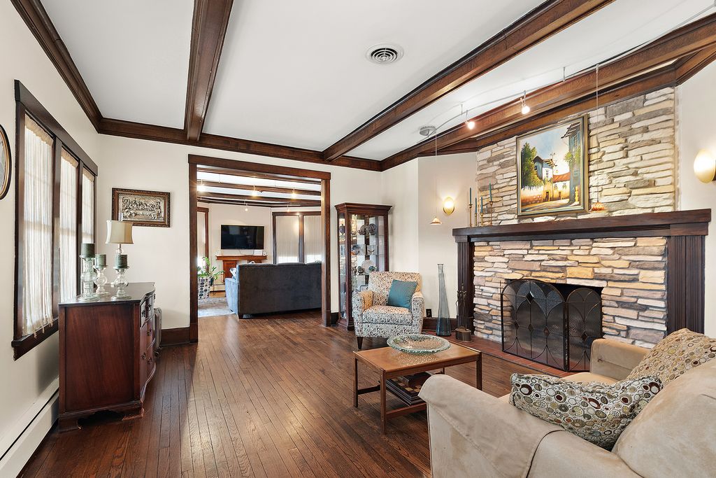Welcome to this beautifully maintained 3-bedroom, 3-bath home offering spacious living, character-rich details, and unbeatable convenience. Each bedroom features a walk-in closet, LVP flooring and freshly painted while the expansive primary suite includes a private sitting room-perfect for unwinding after a long day. Enjoy wood-beamed ceilings in both the living and family rooms, adding warmth and timeless charm. The eat-in kitchen boasts a massive walk-in pantry and flows effortlessly into the living areas, ideal for everyday living and entertaining. The fully finished basement includes a huge recreation room offering endless possibilities for play, fitness, or media. Step outside to a stone brick patio and relax in your own studio space-attached to a heated 2.5-car detached garage-perfect for band practice, art studio, or work out area. The inviting front porch, complete with ceiling fans, offers a relaxing spot to enjoy the peaceful, private corner lot. All of this within walking distance to the Homewood Metra station, shops, dining, and parks. A rare find blending comfort, space, and location!