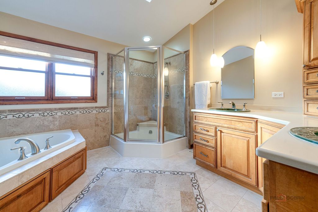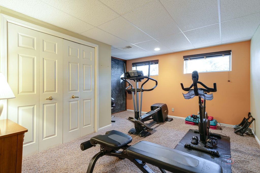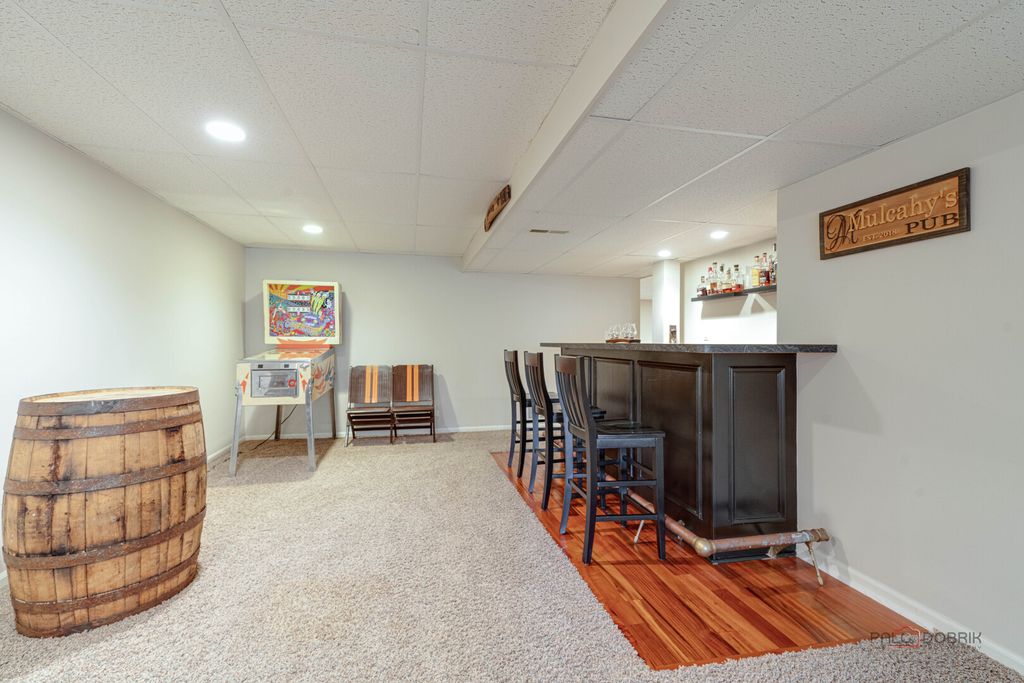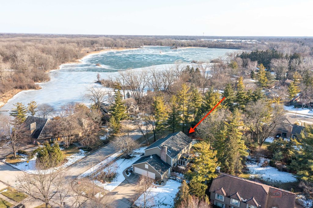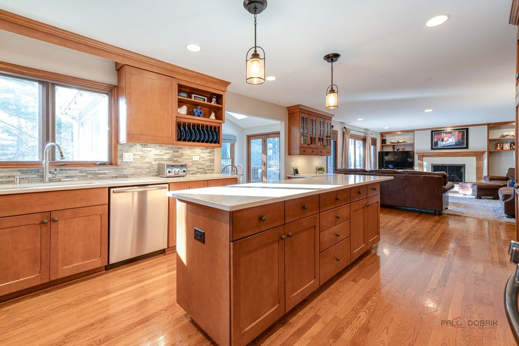 MINUTES TO LAKE MINEAR WITH SCENIC WALKING AND BIKE TRAILS! Impressive 6 bedroom, 4 full bath home on almost a half-acre lot, featuring a finished basement with wet bar, bright sunroom, and fenced backyard, all in a prime Libertyville location near downtown amenities and top-rated schools. The welcoming front porch sets the tone for the peaceful surroundings and offers a perfect place to enjoy morning coffee or unwind at the end of the day. Inside, guests are greeted by a warm foyer and beautifully maintained hardwood flooring that flows throughout the main level, creating a seamless and sophisticated feel. The sun-filled living room and formal dining room offer an ideal layout for both entertaining and everyday living. French doors provide privacy for gatherings, while large windows fill the space with natural light. The eat-in kitchen is the heart of the home, showcasing custom cabinetry with crowned uppers and under-cabinet lighting, quartz countertops, a chic tile backsplash, and stainless steel appliances including an LG refrigerator (2021), Whirlpool microwave (2021), KitchenAid double oven, and Bosch dishwasher. An extra-long center island with breakfast bar seating offers ample prep space or a place to gather for a quick bite, and a built-in planner's desk keeps everything organized. Just beyond, the bright heated sunroom overlooks the beautifully landscaped, fenced backyard with mature trees and provides easy access to the expansive deck, creating effortless indoor-outdoor living that is ideal for entertaining. The family room is the perfect retreat to unwind after a long day, featuring a warm gas fireplace with a raised hearth, flanked by built-ins that combine style with storage, and immersive surround sound speakers, offering an ideal space to curl up with a book, enjoy movie nights, or simply relax in comfort. This level also includes a first-floor office great for working remotely, a laundry room, and a full bath. Upstairs, the expansive primary suite features cathedral ceilings, a large walk-in closet with custom organizers, and a spa-inspired bath with dual vanities, whirlpool tub, and separate shower. Four additional generously sized bedrooms with ample closet space and a centrally located full bath complete the second level, accommodating family or guests. The finished basement extends your living space with a large recreation room, wet bar, game area, additional bedroom, and full bath-ideal for guests, entertaining, or creating a media room, home gym, or private retreat. A three-car attached garage and storage shed provide exceptional storage. Located just minutes from Adler Park, the pool, Adler School, boutique shopping, dining, the farmers market, and Metra access. This is a must see!