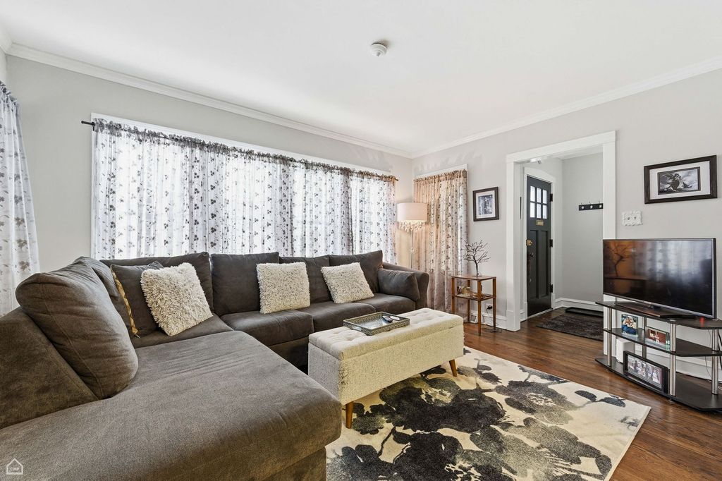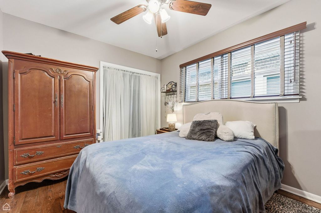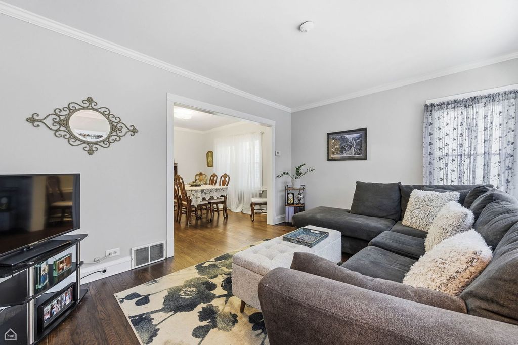 Perfect starter home! This brick bungalow features 3 bedrooms, 1 bathroom, a den, walk-in pantry in the kitchen, and useful attic space with wood floors that can be utilized as it is or refinished. The washer and dryer are situated in the full unfinished basement, which has potential for additional finished square footage. New water heater and furnace in 2019. Newer windows throughout the entire house, including basement windows. The entire chimney was rebuilt, and a stainless steel liner was installed in 2024. Cute backyard leads to a 2-car detached garage. Two blocks to Bridge Elementary school and Shabbona Park & Pool, one block to Dunning Read Nature preserve. Home is being sold as-is.