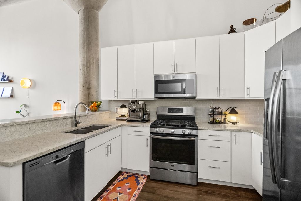 Music buffs, this one's for you. Welcome to this modern two-bedroom, two-bath loft in the iconic Chess Lofts which was home to the legendary record label, Chess Records. They helped define blues and rock 'n' roll. Soaring high ceilings, exposed brick, premium flooring, and designer lighting frame an open layout with skyline views and a private balcony. The sleek kitchen features stainless steel appliances, quartz countertops, and a glass tile backsplash. Four full-size closets and a pantry offer excellent storage within the unit. Both bathrooms feature stone showers, including a soaking tub in the primary suite. In-unit laundry and smart temperature control add everyday convenience. This full-amenity elevator building includes a rooftop deck with city and lake views, fitness center, bike room, and onsite engineer. A deeded indoor garage parking spot is INCLUDED in the list price. Located in the heart of the South Loop, you're close to dining, nightlife, live music at Reggie's and the Velvet Lounge, Wintrust Arena, and the growing entertainment district. Downtown, Museum Campus, Grant Park, the Art Institute, Soldier Field, and McCormick Place are all minutes away. A playground and gated dog park next door make this home just as practical as it is stylish.