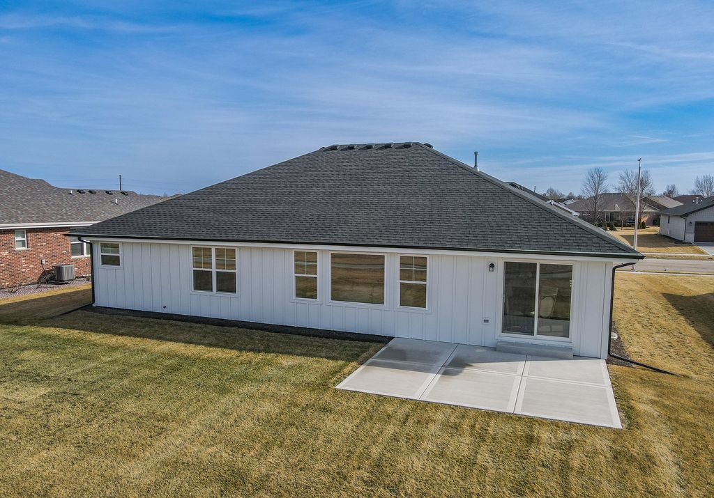 New Construction 3 bedroom 2 bathroom 2005 sq. ft ranch home with a full basement. A warm, contemporary exterior welcomes you with crisp white board-and-batten siding and sleek black trim. The spacious covered porch is perfect for morning coffee or relaxed evenings, setting the tone for this thoughtfully updated home. Step inside to an open-concept floor plan that seamlessly blends the kitchen, dining area, and family room beneath a cathedral ceiling. Natural sunlight floods the space, highlighting luxury vinyl tile in a rich chocolate tone that offers the look and texture of hardwood with easy maintenance. Gorgeous modern kitchen: Custom midnight-finish cabinetry with soft-close drawers and doors Elegant quartz countertops in a warm neutral palette (creamy off-white / light taupe) Honey-bronze cabinet hardware and designer finishes that balance warmth and sophistication Primary suite: Adjoining master bath with dual sinks on white custom cabinetry Cultured marble countertops, a deep soaking tub for unwinding, and an adjacent custom-tile shower for a spa-like experience Lower level: Unfinished basement with a full radon mitigation system installed Concrete walls covered with insulation blankets to meet 2024 national energy codes. Neighborhood amenities include a playground and walking path. This home blends timeless style with on-trend finishes and practical upgrades-perfect for comfortable everyday living and effortless entertaining. Please call to schedule your private tour today. (Agent related.)